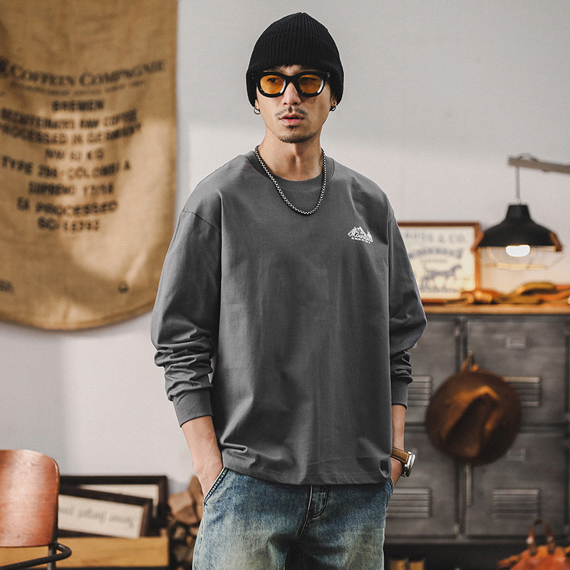 春季新款美式山系T恤男長袖寬鬆潮牌260g重磅男士上衣打底衫