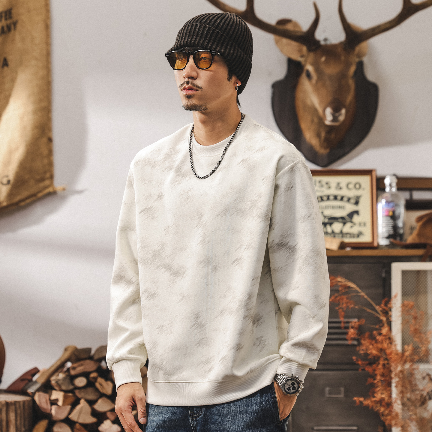 美式復古髒髒扎染重磅衛衣男2025新款潮流寬鬆大碼休閒圓領上衣男
