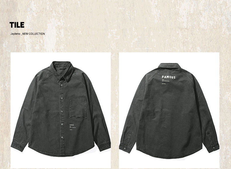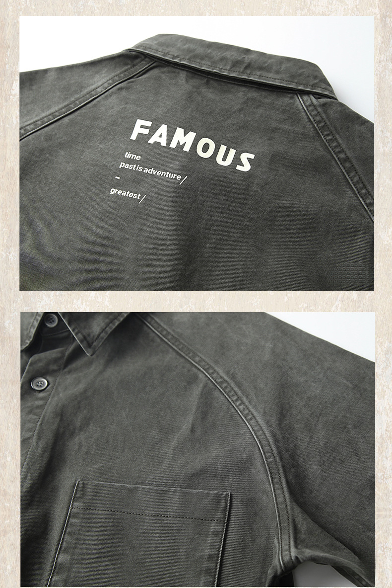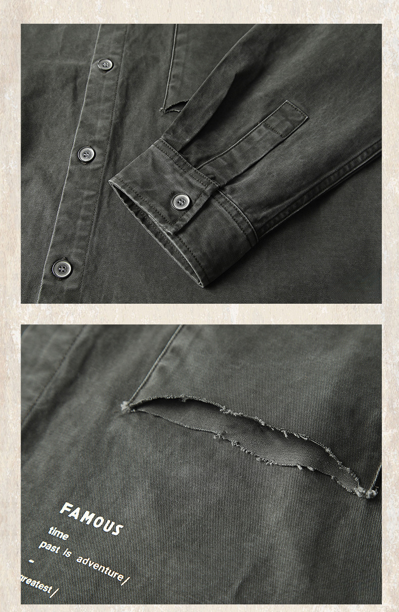 復古洗褪工裝襯衫男長袖寬鬆硬漢獵裝教練夾克外套男春季