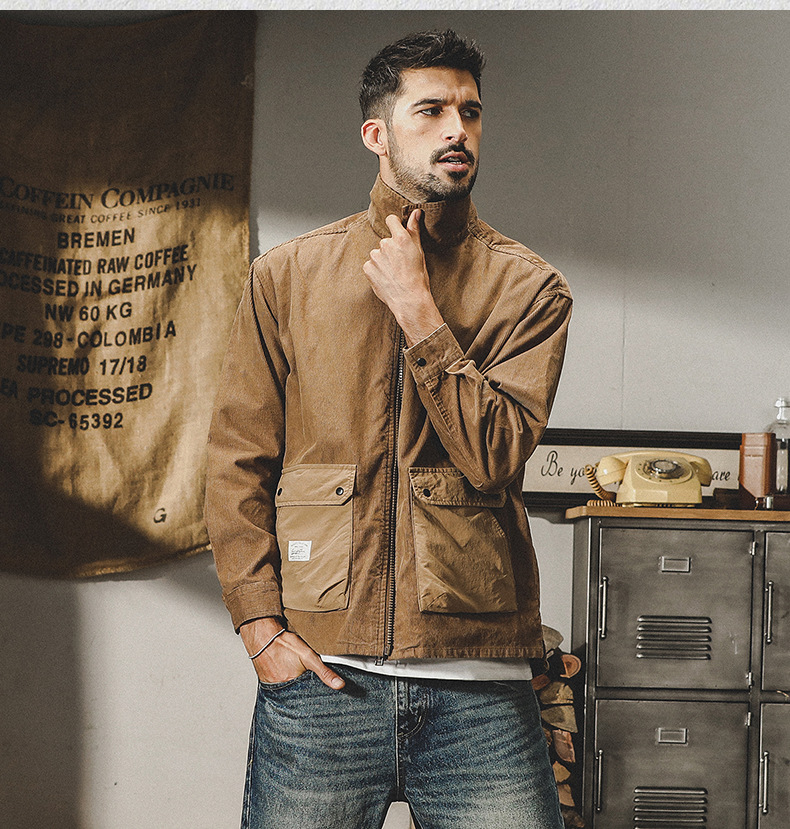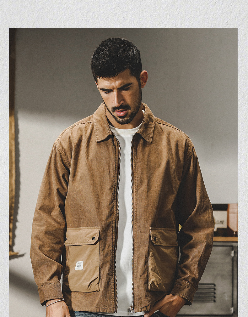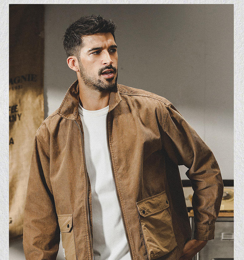 杰雷諾加厚條紋燈芯絨襯衫外套男秋冬款美式復古重磅寬鬆工裝夾克