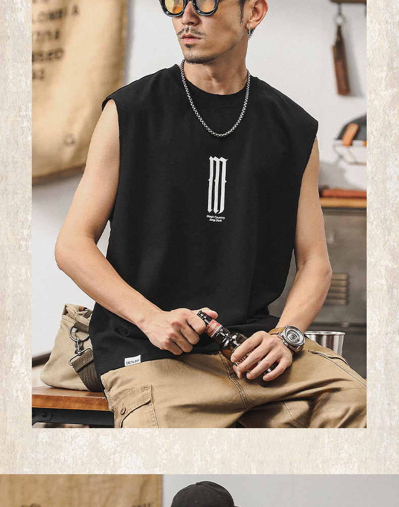 無袖T恤男夏季潮流復古做舊坎肩男款純棉背心重磅運動健身上衣潮T