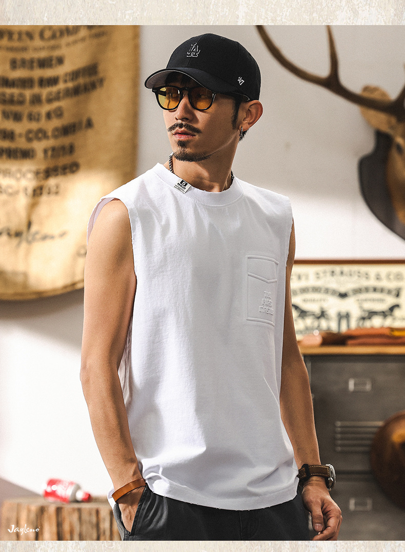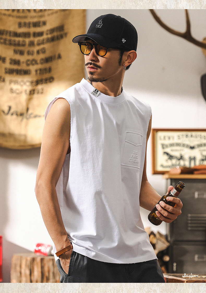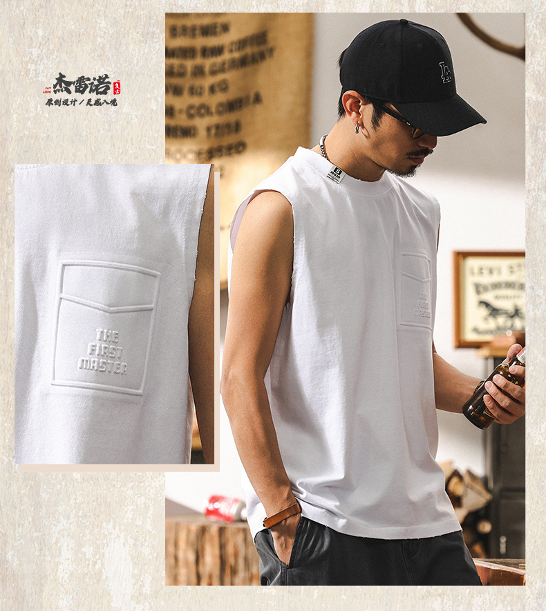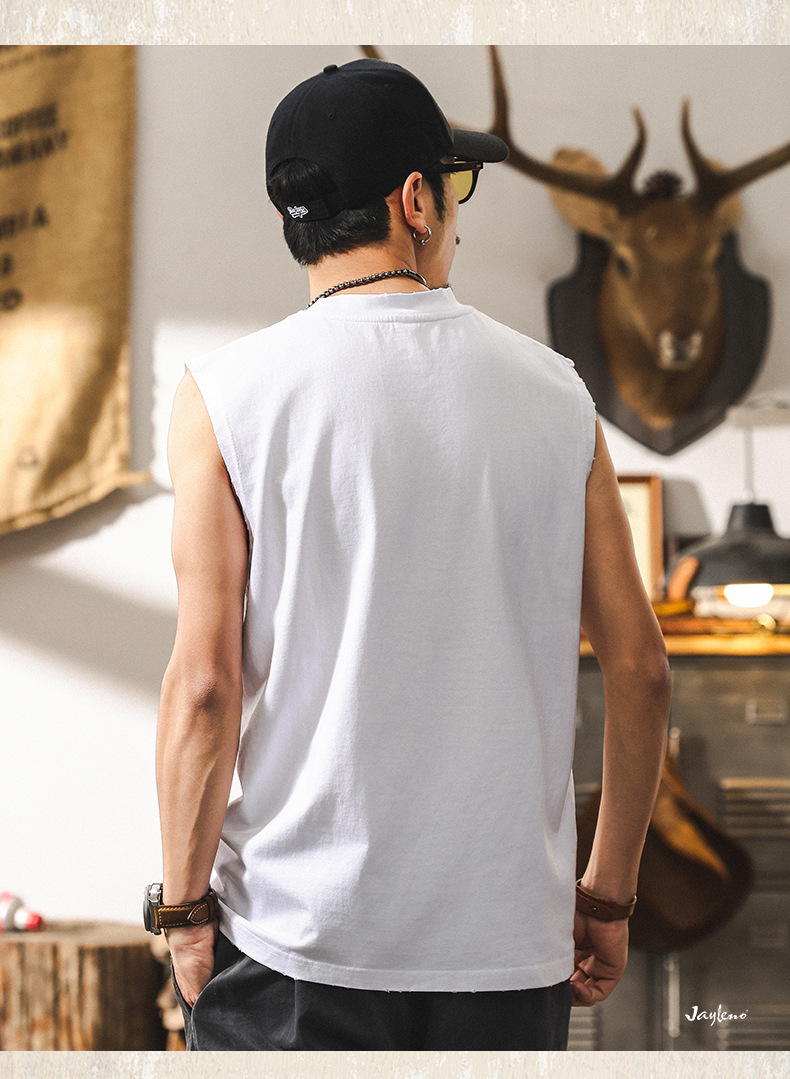 磨毛運動健身坎肩背心男款夏季2025新款潮牌寬鬆大碼男士上衣T恤