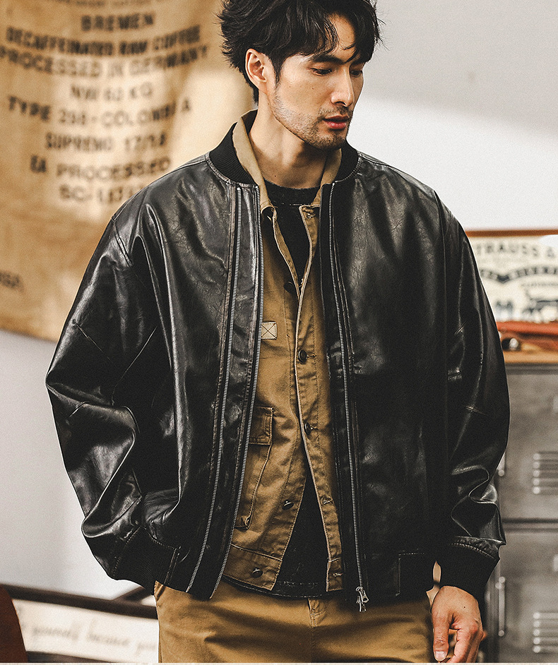美式復古做舊機車皮衣外套男寬鬆秋季潮牌硬漢潮流飛行員夾克男款