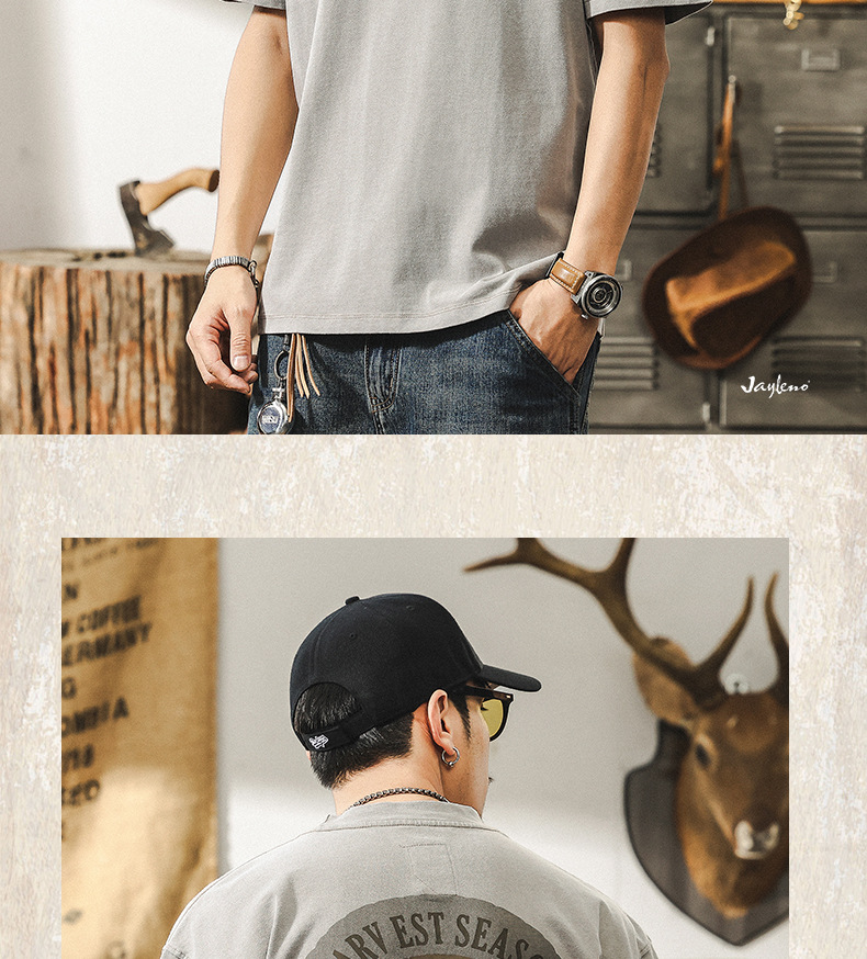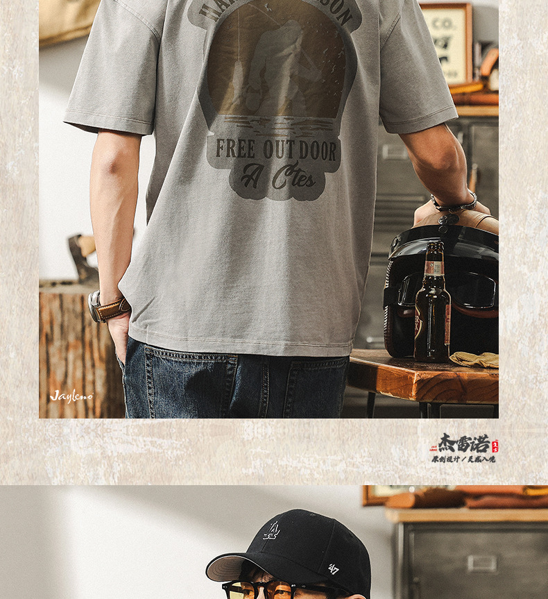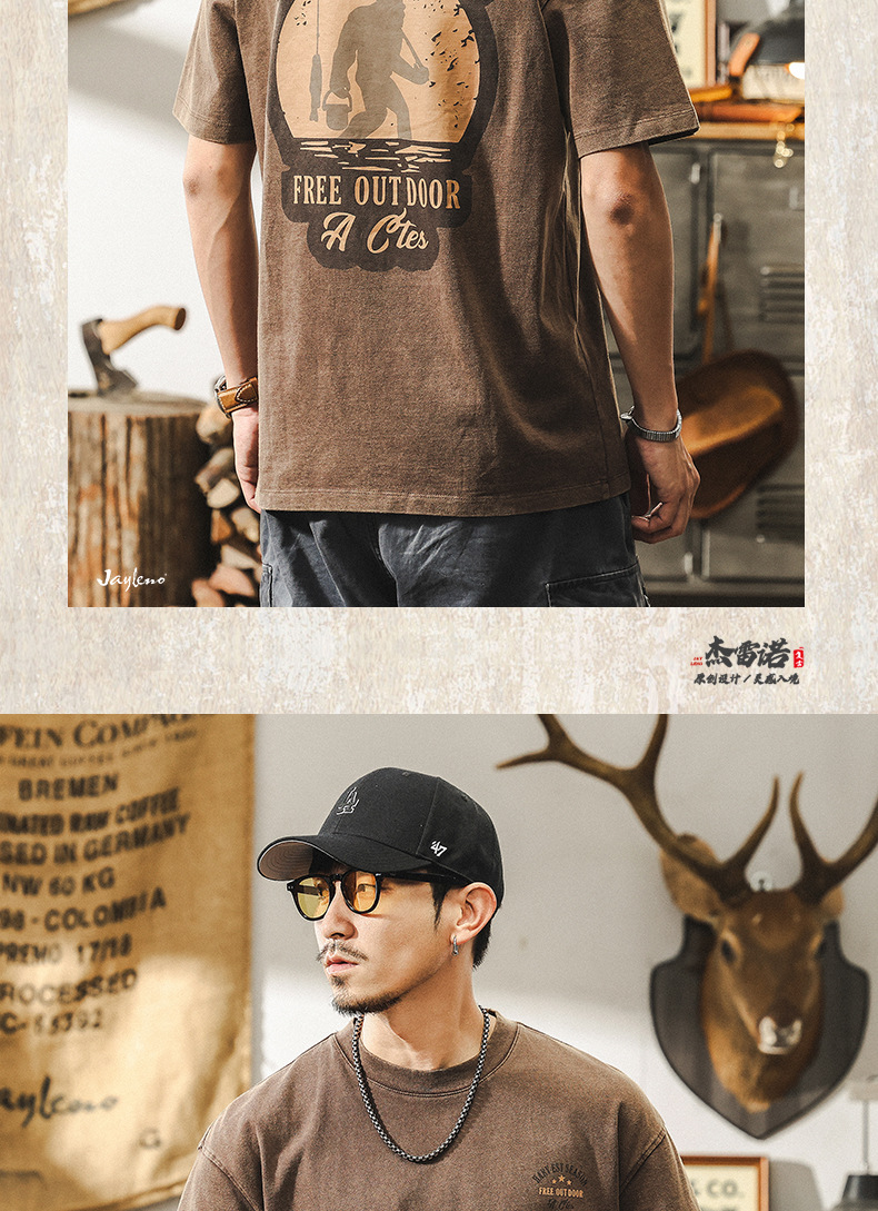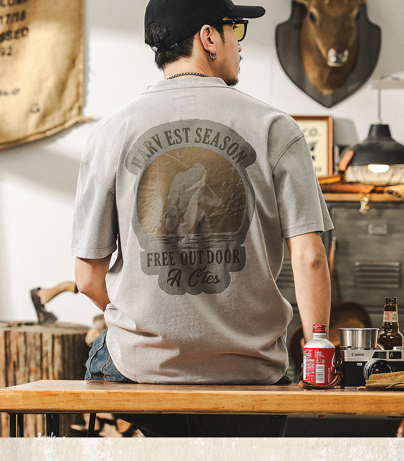 美式復古做舊水洗短袖夏季男士T恤2025新款潮牌寬鬆印花衣服