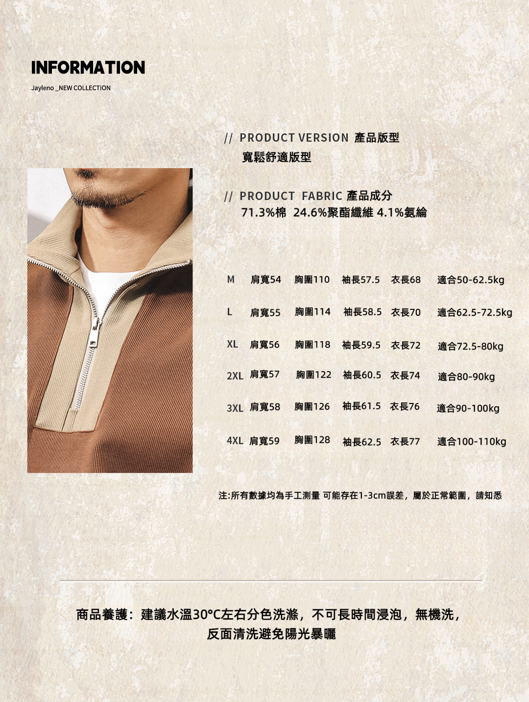 美式復古半拉鍊重磅衛衣男春秋2025新款撞色拼接寬鬆休閒上衣男潮