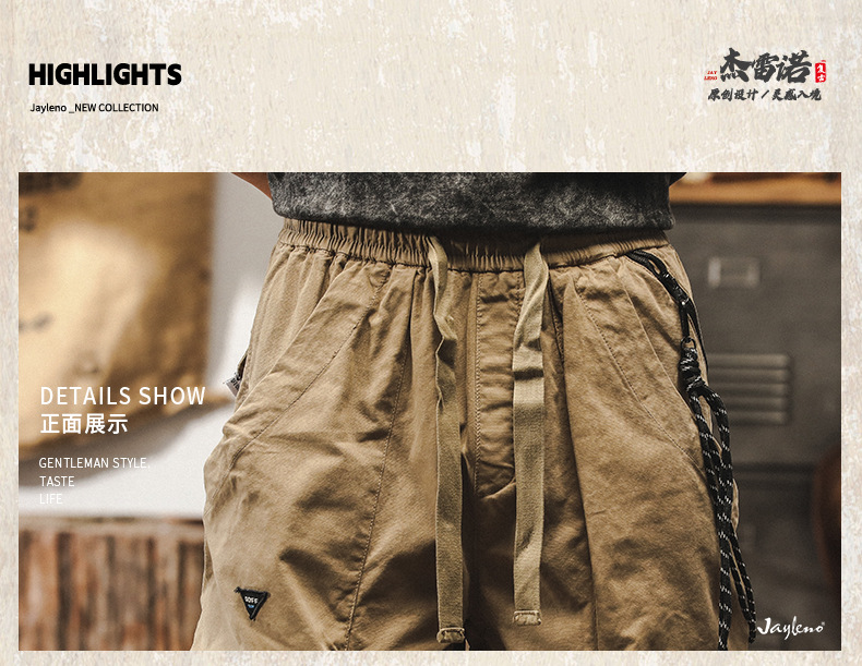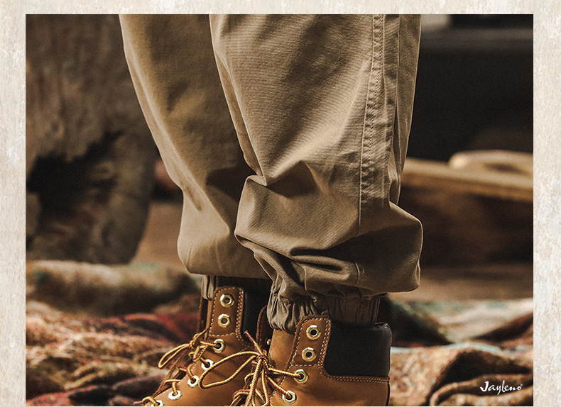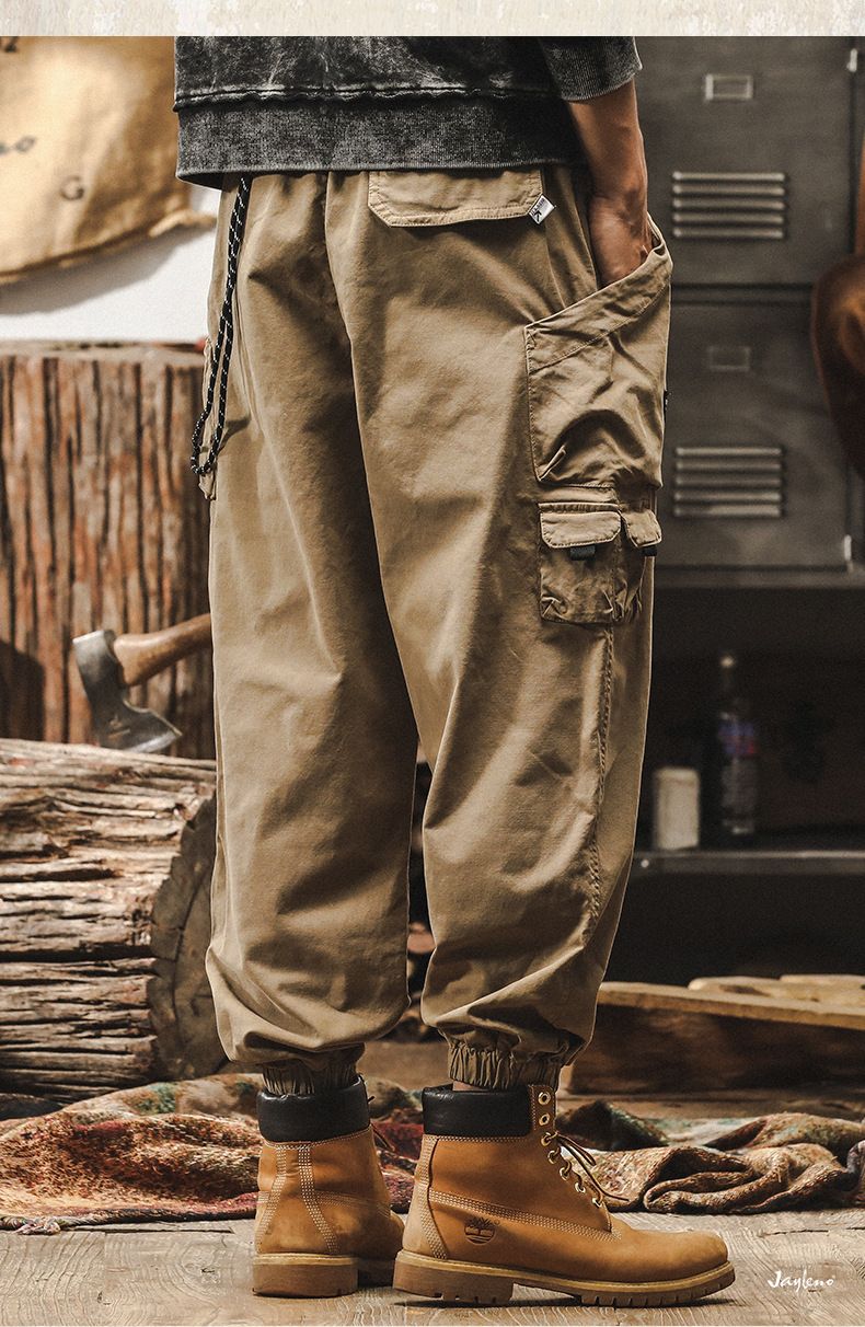 美式復古卡其色工裝褲子男秋季寬鬆闊腿褲新款戶外潮牌男士休閒褲