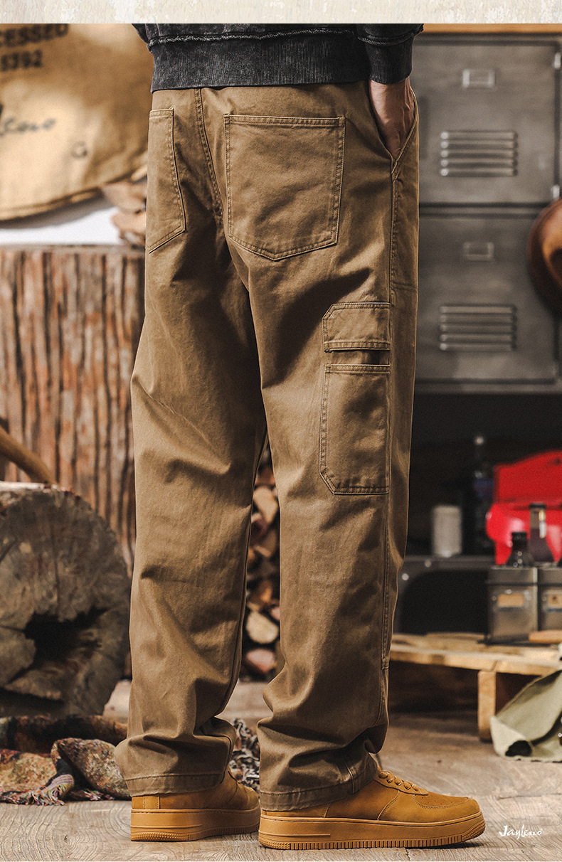 美式復古卡其色工裝褲男2025秋季新款潮牌直筒闊腿長褲男士休閒褲