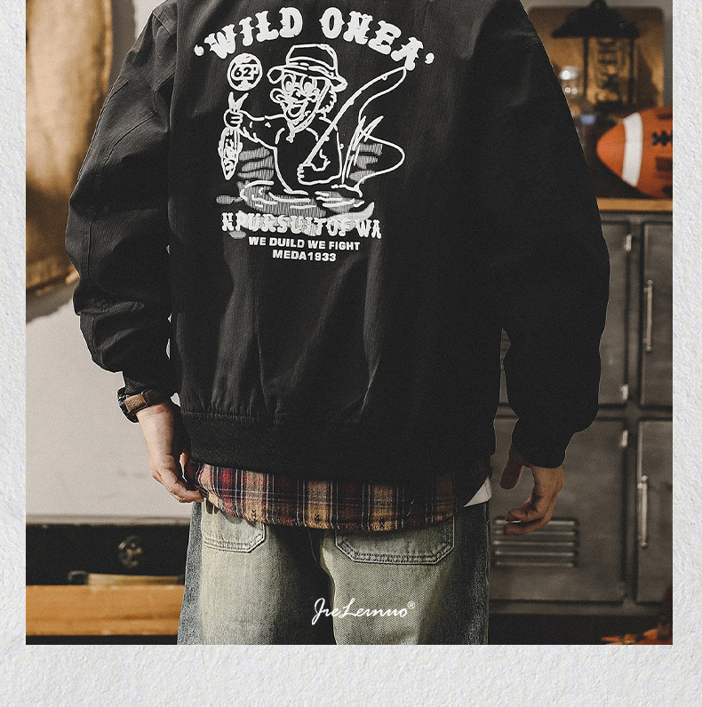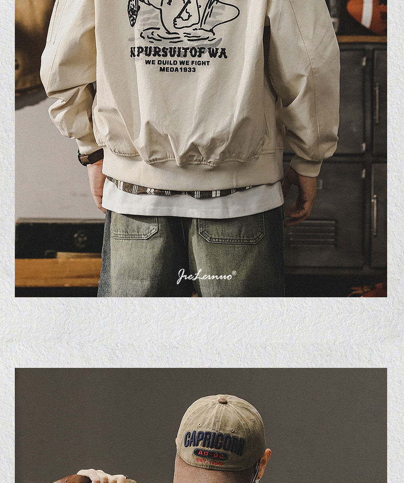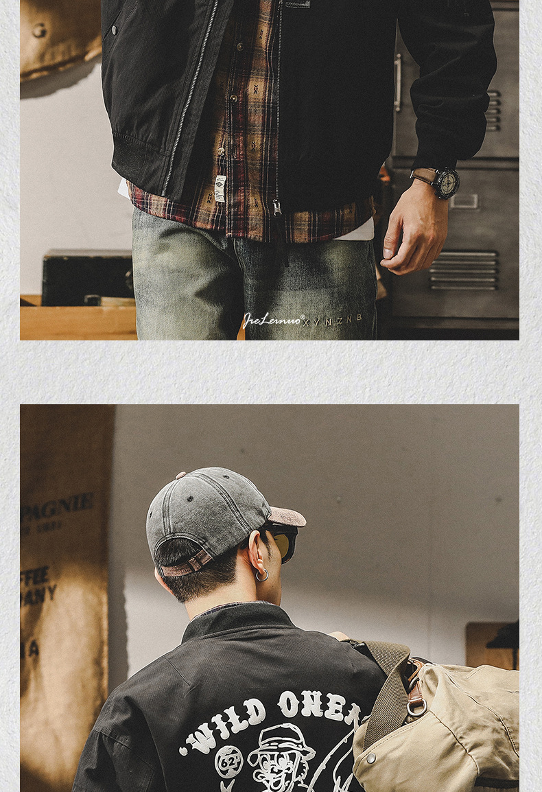 美式復古工裝夾克男潮牌寬鬆大碼棒球服飛行員外套男秋冬款
