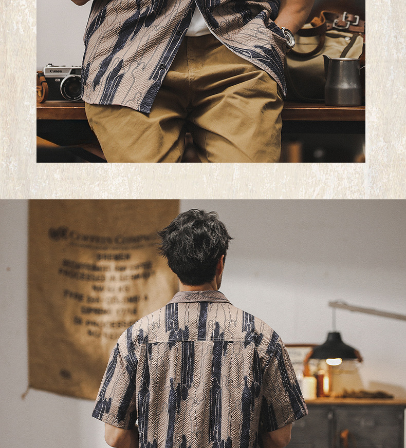 美式復古工裝襯衫男短袖夏季薄款寬鬆條紋夏威夷潮牌休閒男士襯衣