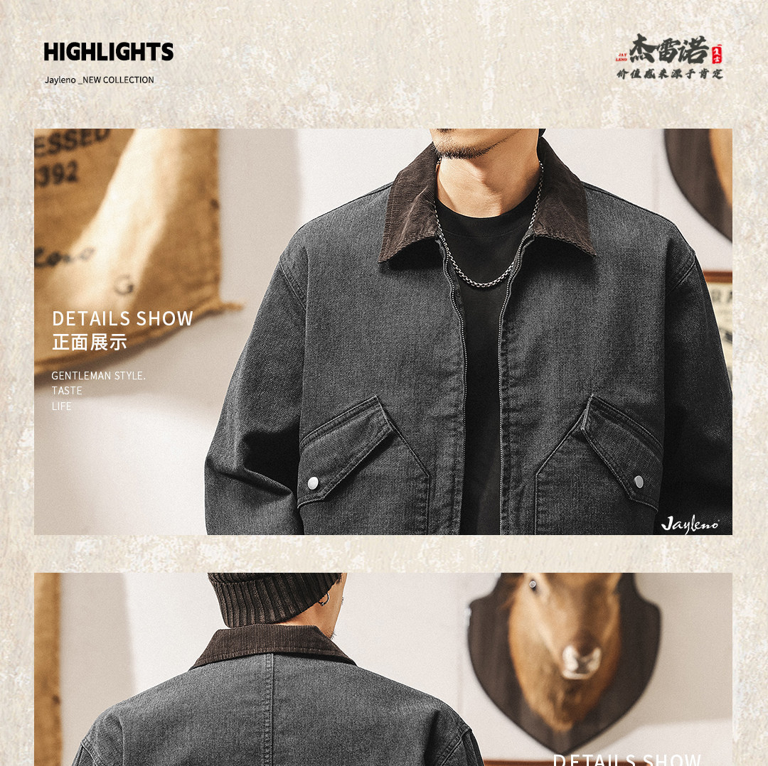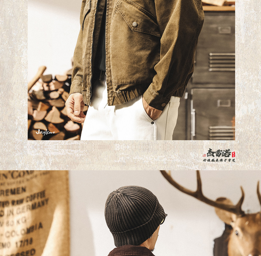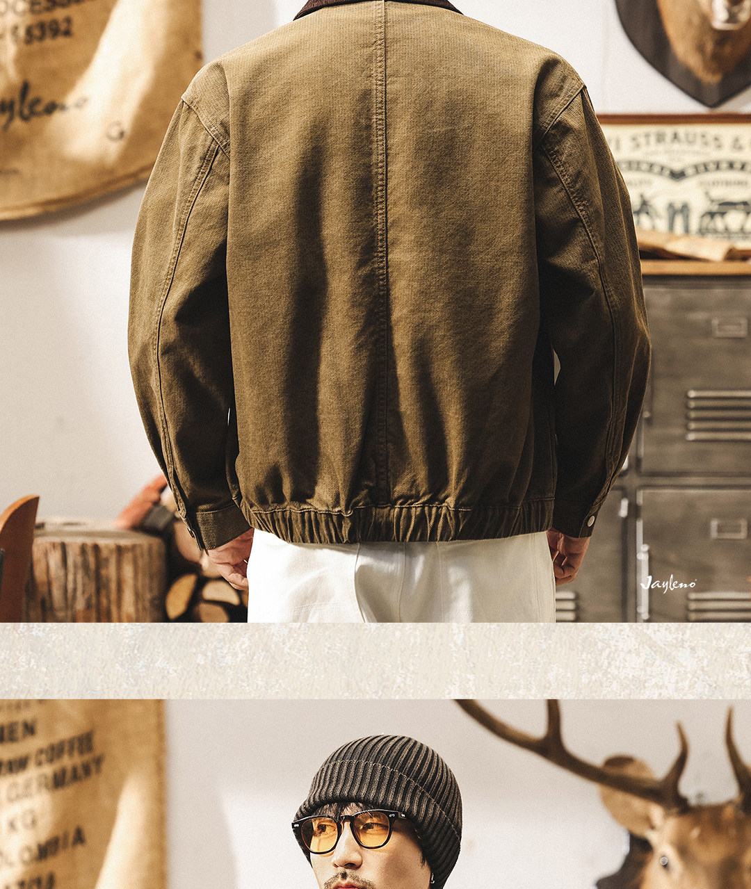美式復古底特律夾克男春季新款潮牌帥氣提花亞麻珠帆布工裝外套男