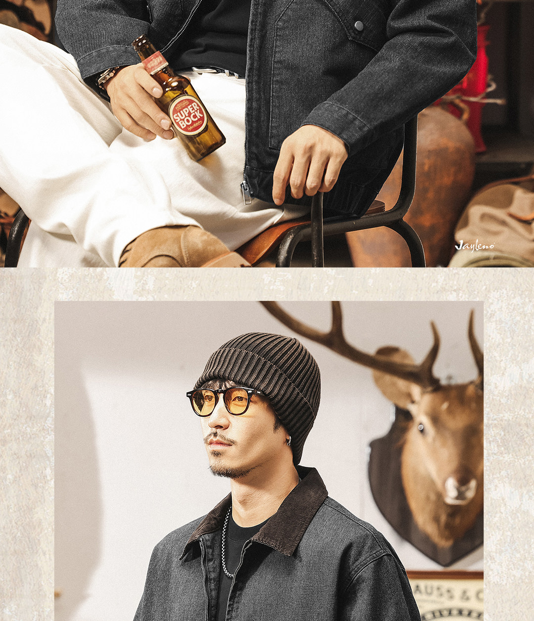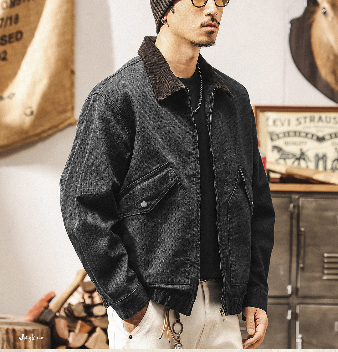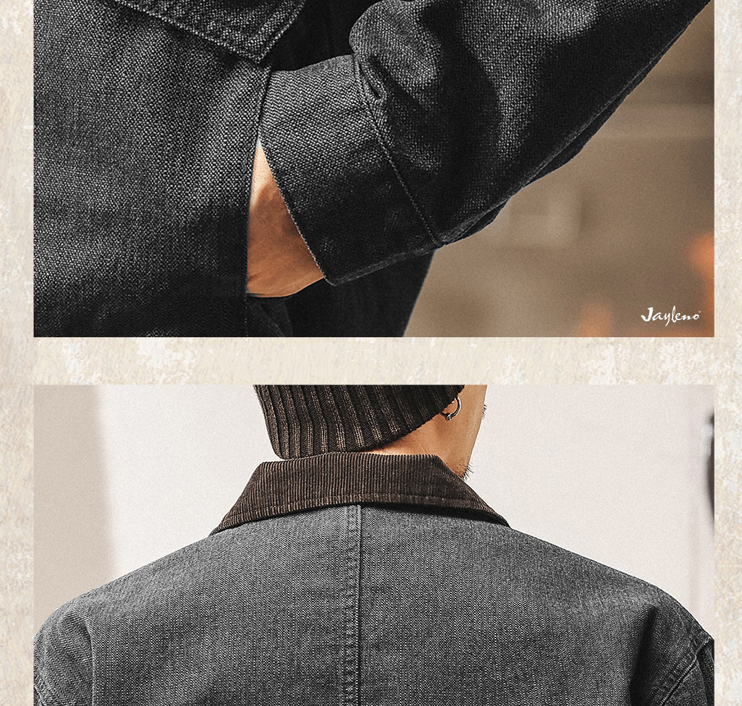 美式復古底特律夾克男春季新款潮牌帥氣提花亞麻珠帆布工裝外套男