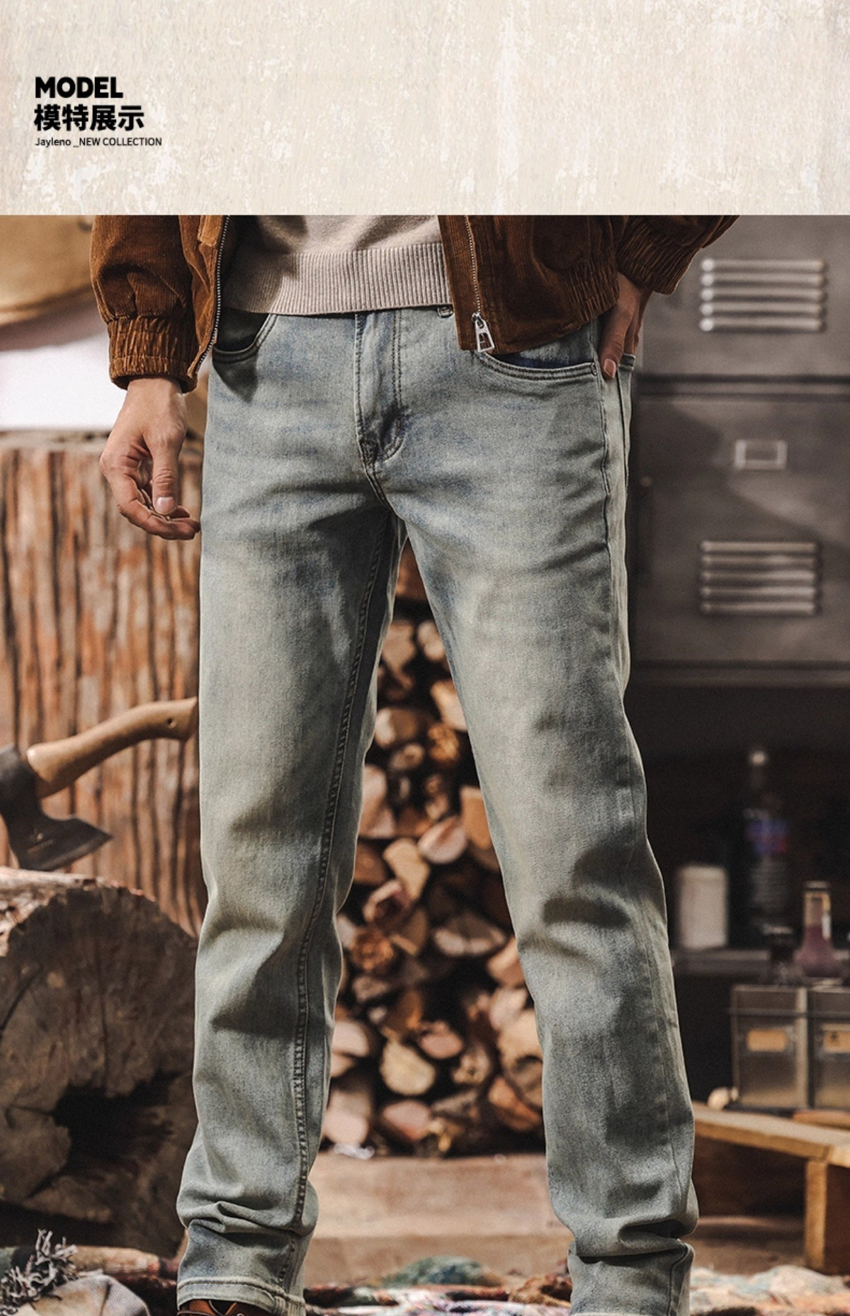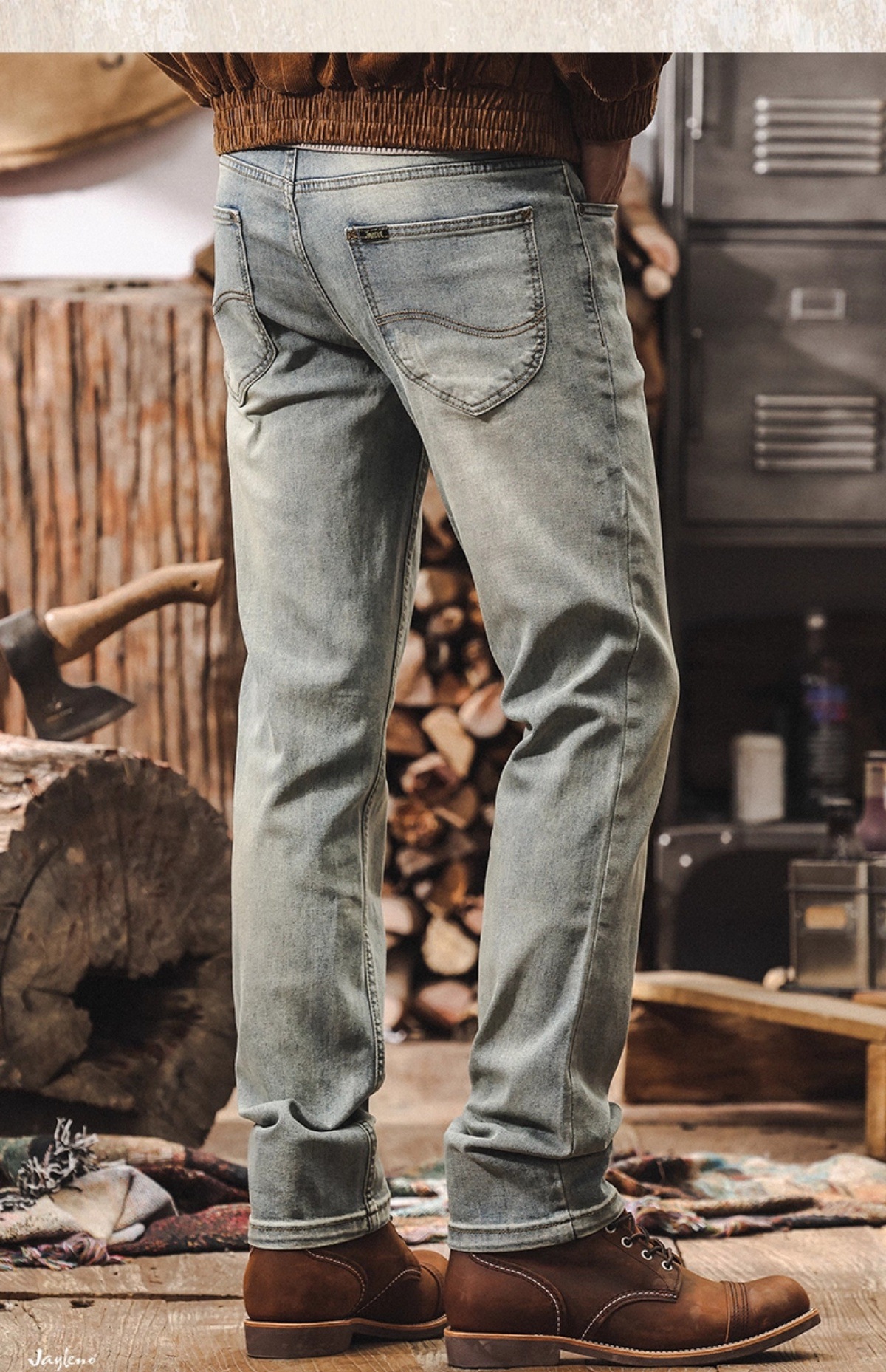 美式復古水洗牛仔褲男款2025潮牌直筒修身長褲男士秋季新款休閒褲
