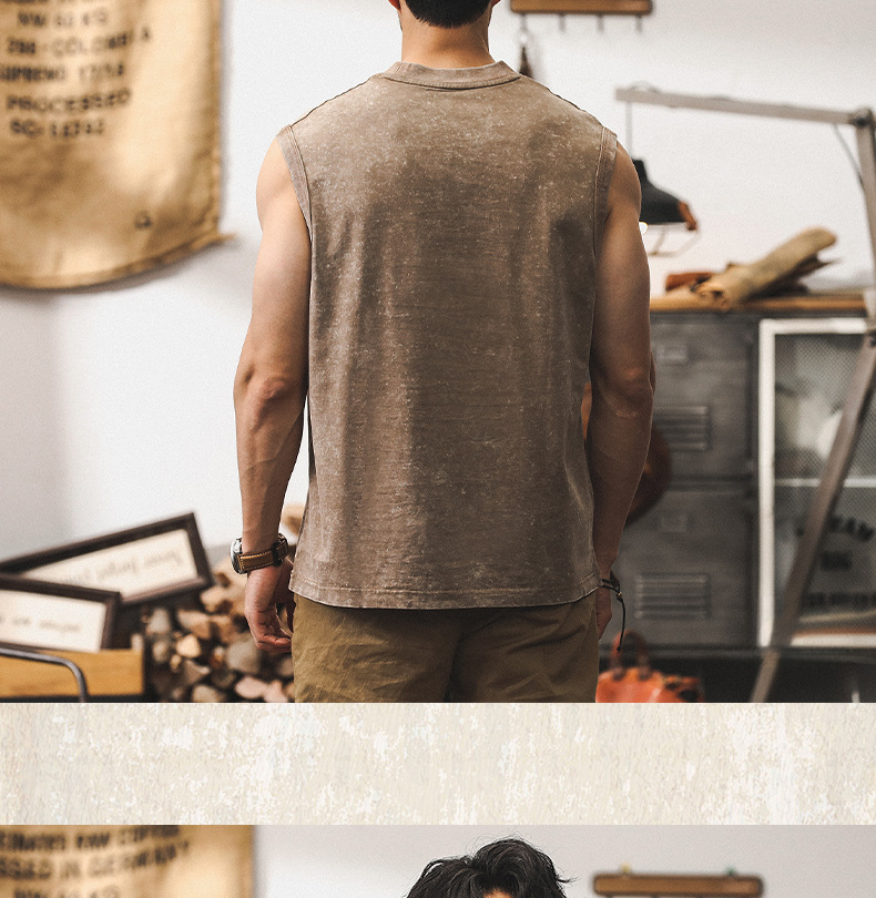 美式復古男士背心夏季寬鬆炒雪花水洗重磅T恤坎肩運動無袖上衣男T