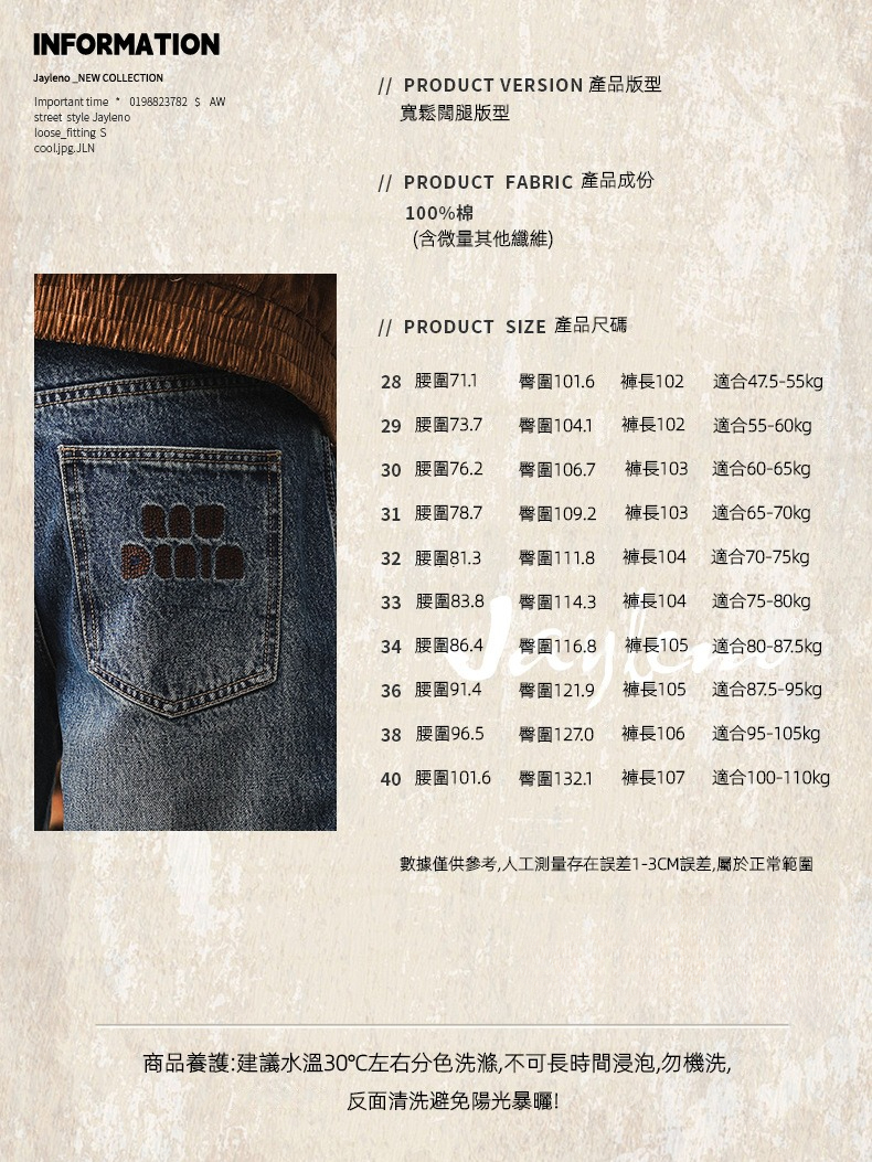 美式復古經典藍色牛仔褲男直筒2024新款寬鬆闊腿石磨水洗休閒褲男