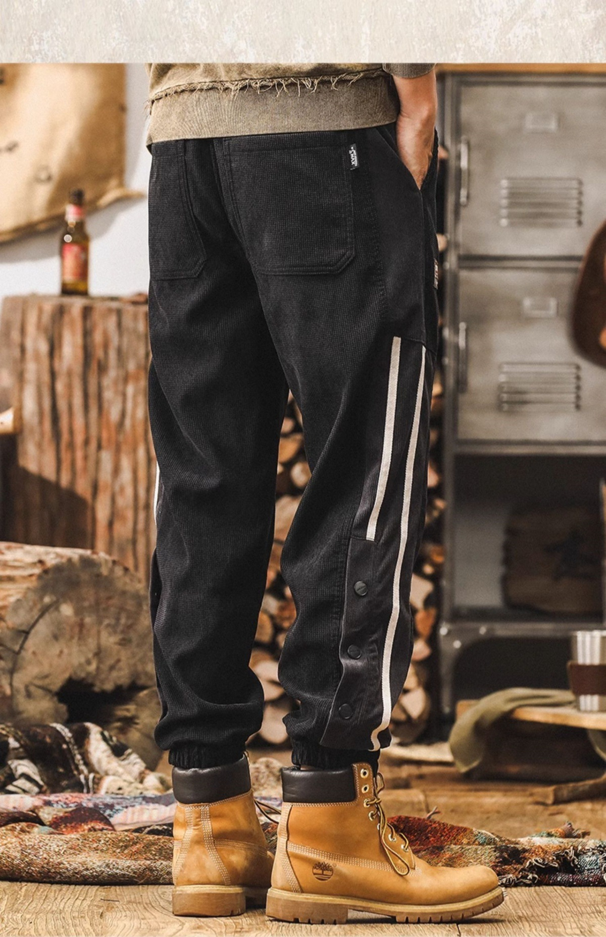 美式復古重磅休閒衛褲男秋冬款潮流條紋長褲子男士拼接束腳工裝褲