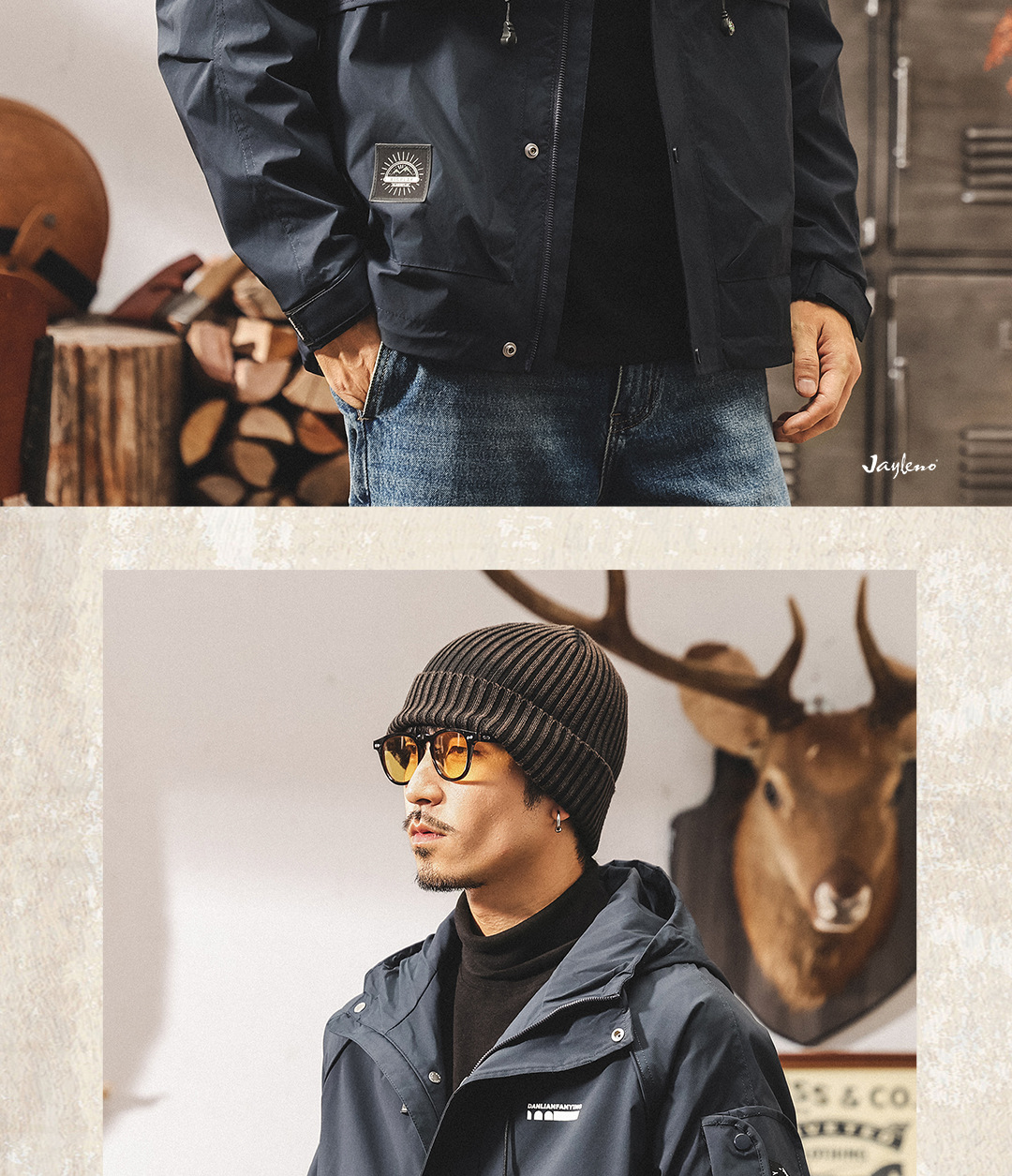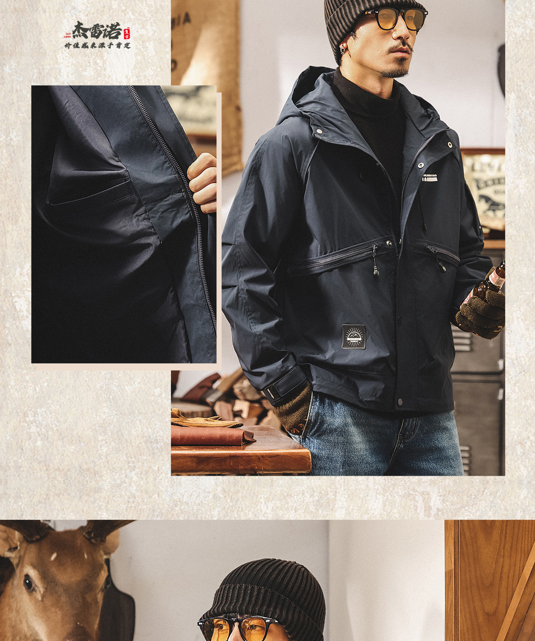 美式復古防風工裝外套男春秋連帽男士潮流山系戶外教練獵裝夾克男