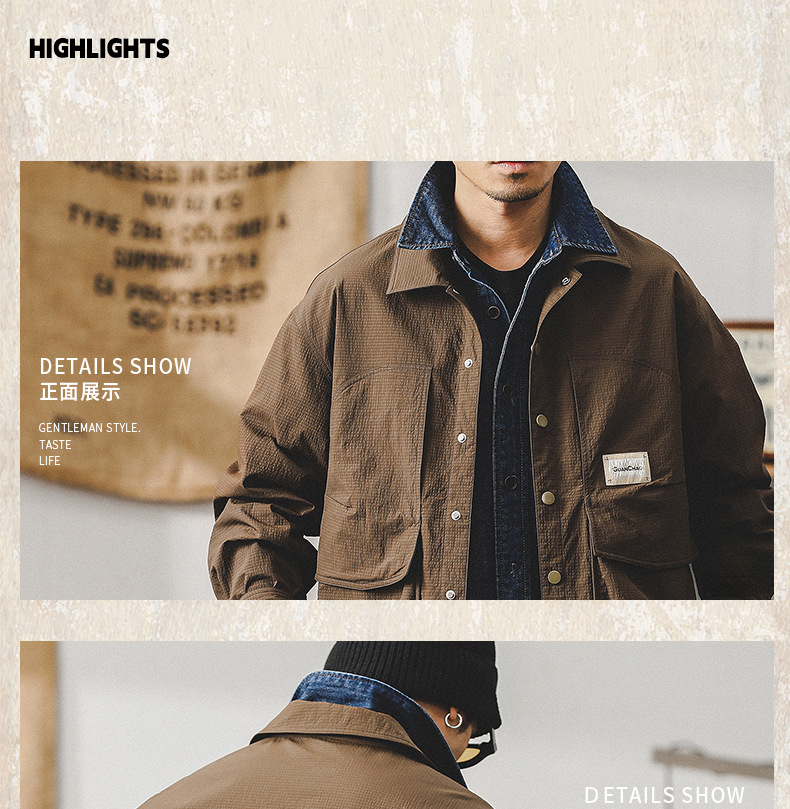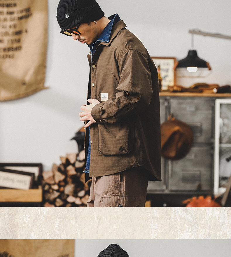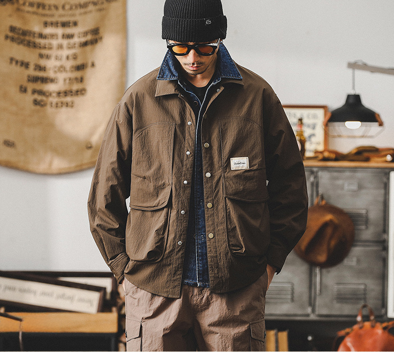 美式復古高級感戶外襯衫男長袖春季輕防水獵裝教練戰術夾克外套男