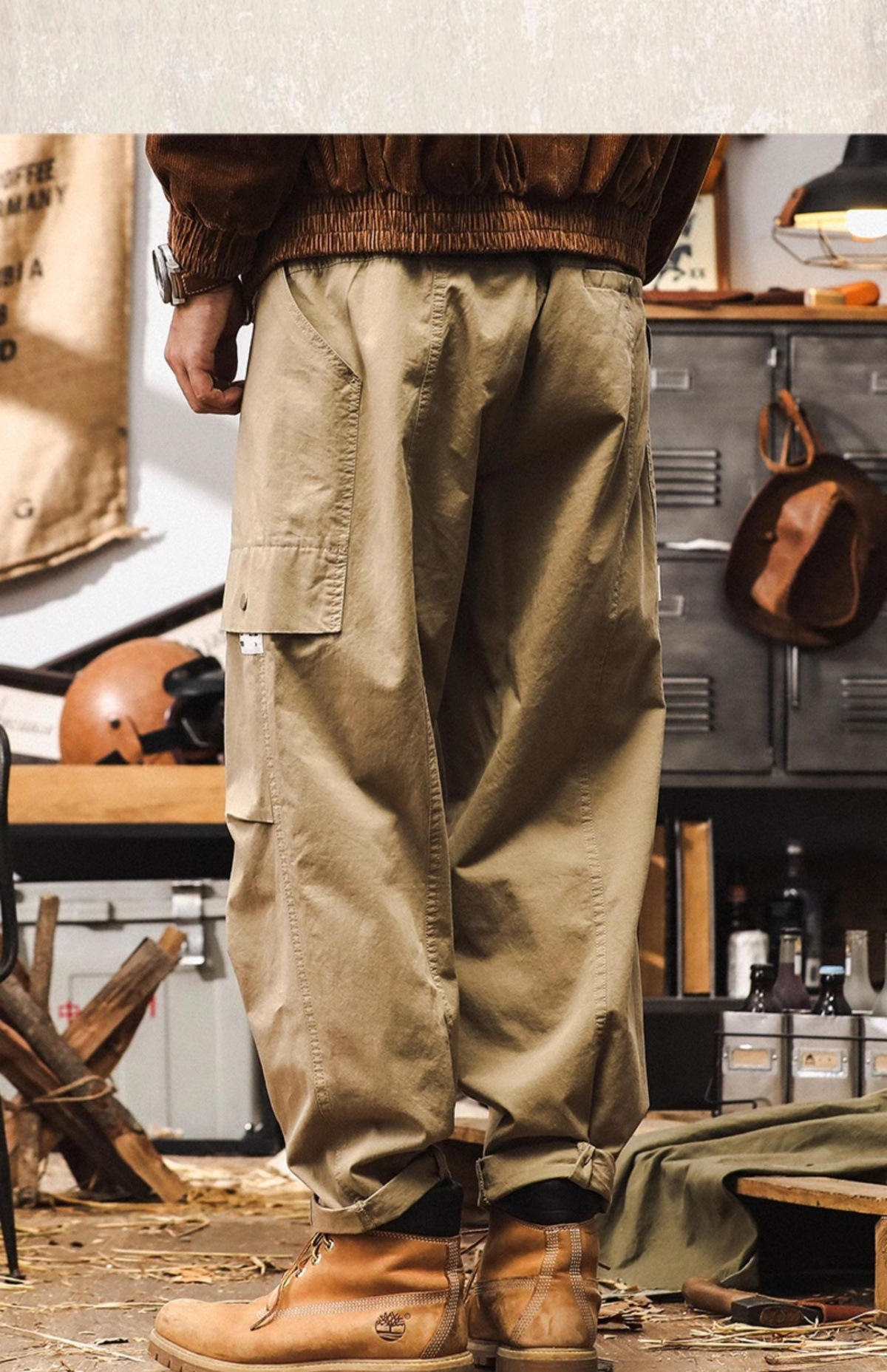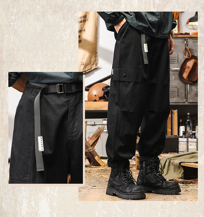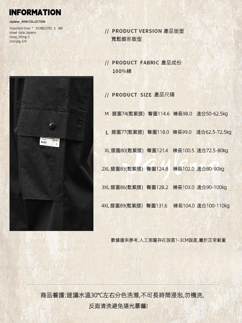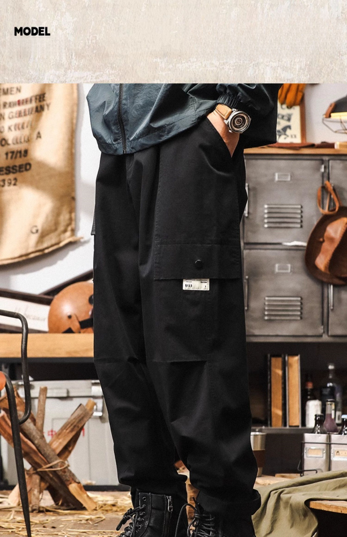 美式復古黑色工裝褲男秋季潮牌寬鬆直筒2024新款城市通勤休閒褲男