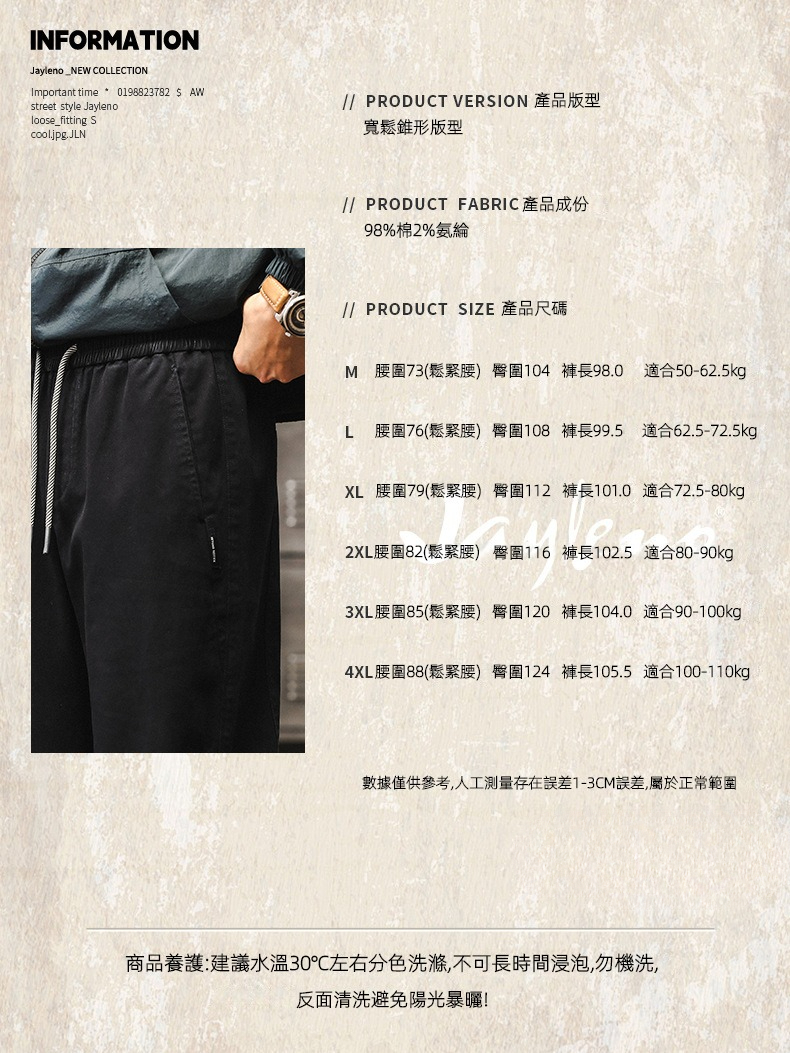 美式復古黑色工裝褲男秋裝2024新款潮牌寬鬆小白布休閒男褲長褲