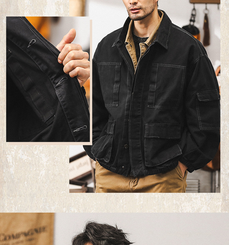 美式復古黑色牛仔外套男春秋款潮牌硬漢獵裝戶外機能工裝秋季夾克