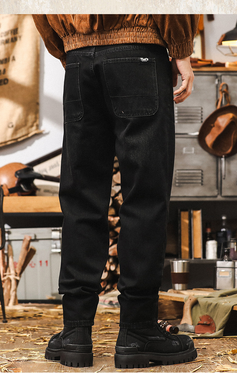 美式復古黑色牛仔褲男秋季酵母工廠水洗褲子men2024新款寬鬆直筒休閒褲