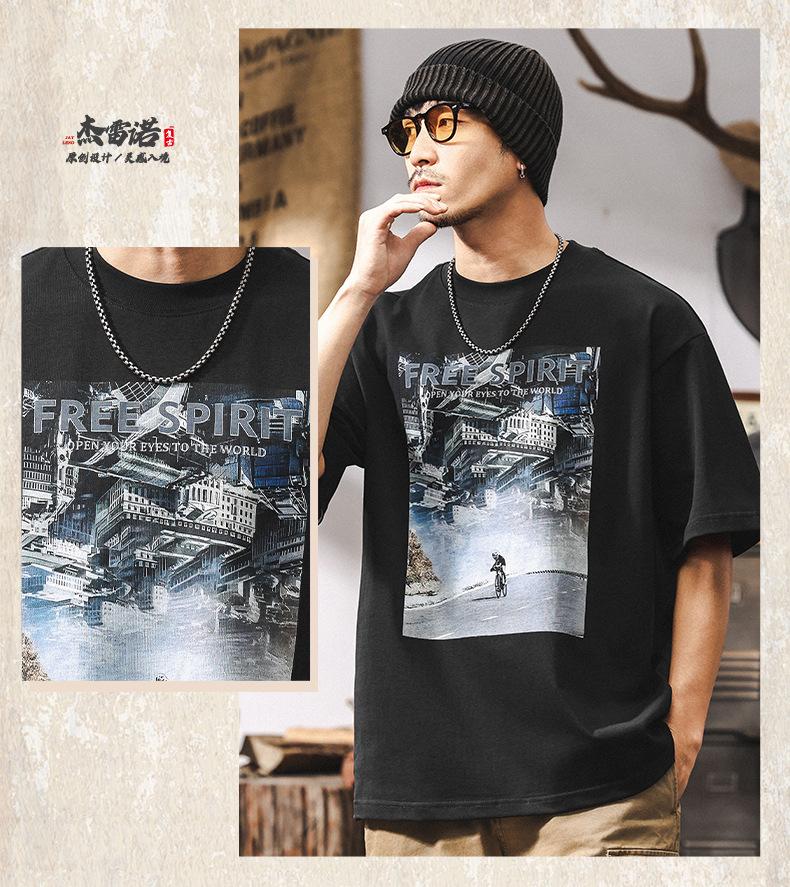 美式復古300g重磅T恤男夏季短袖2025新款潮流印花休閒上衣男