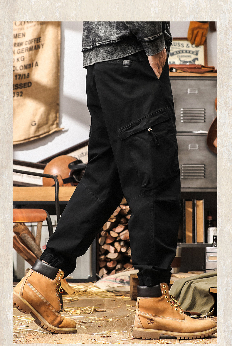 美式潮牌卡其色工裝褲子男秋季多口袋機能束腳褲戶外通勤休閒男褲
