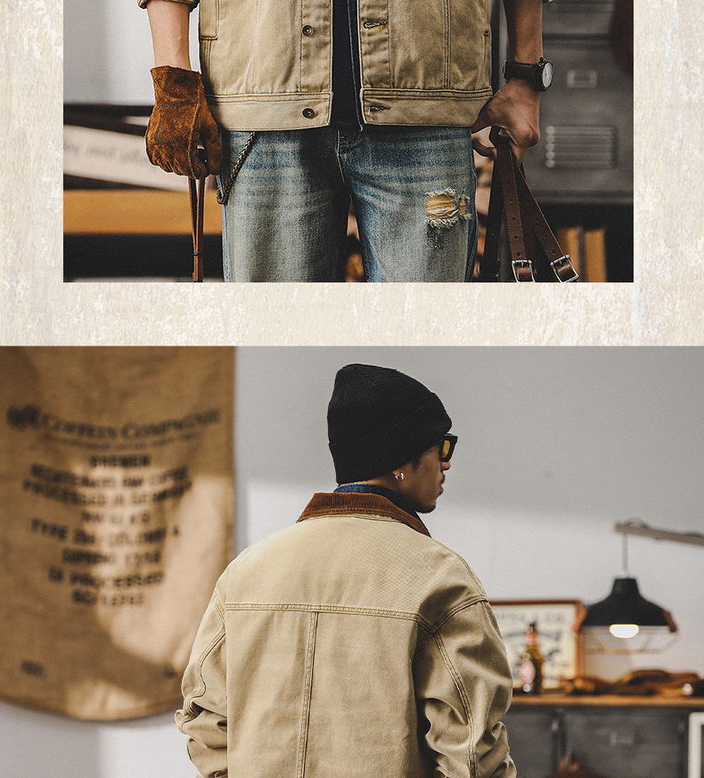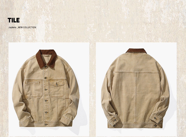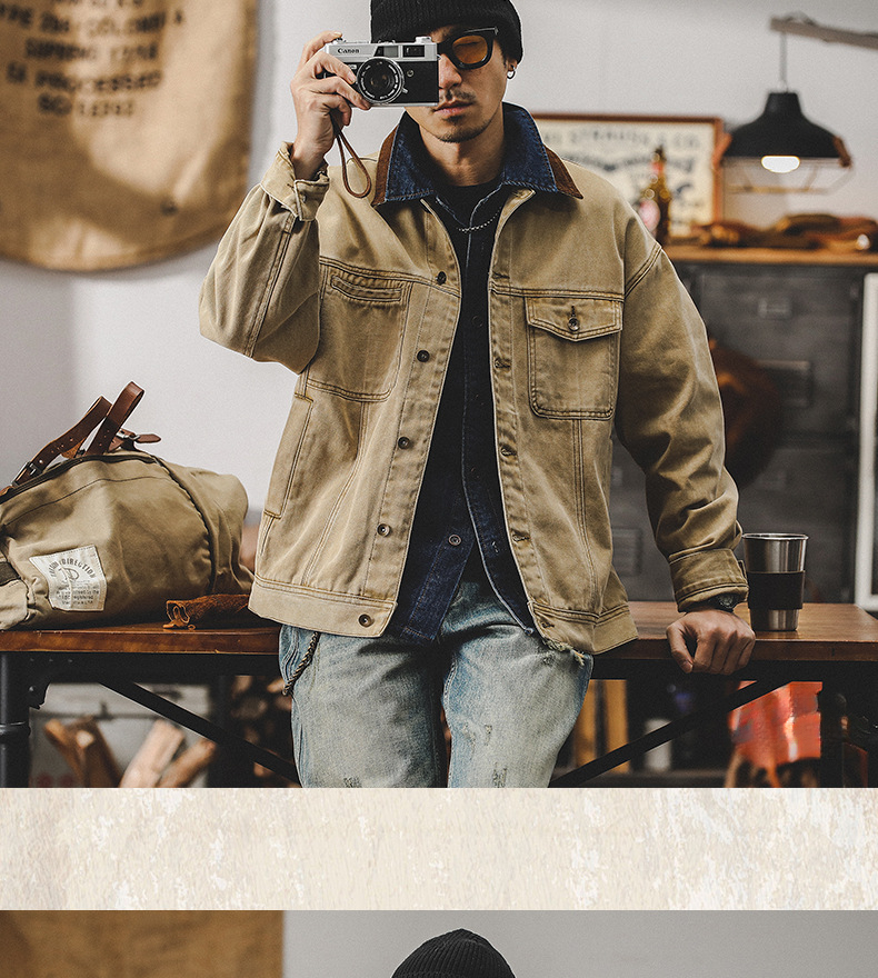 美式經典復古工裝外套男春秋款2024撞色痞帥寬鬆潮牌男士休閒夾克