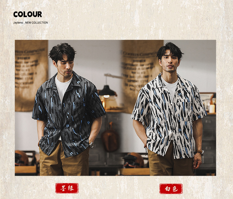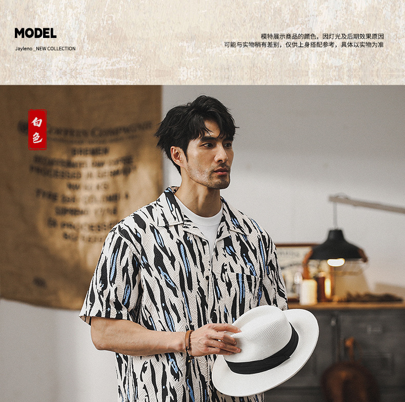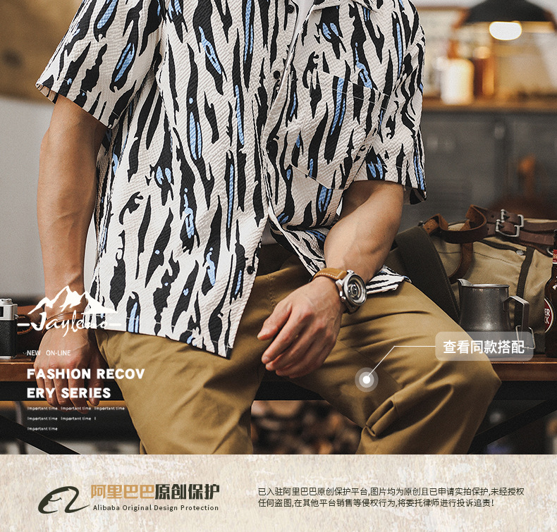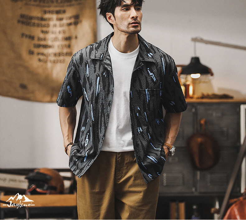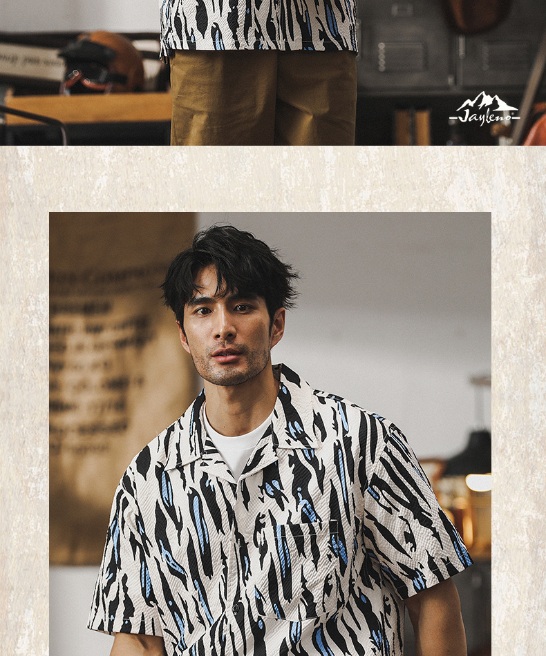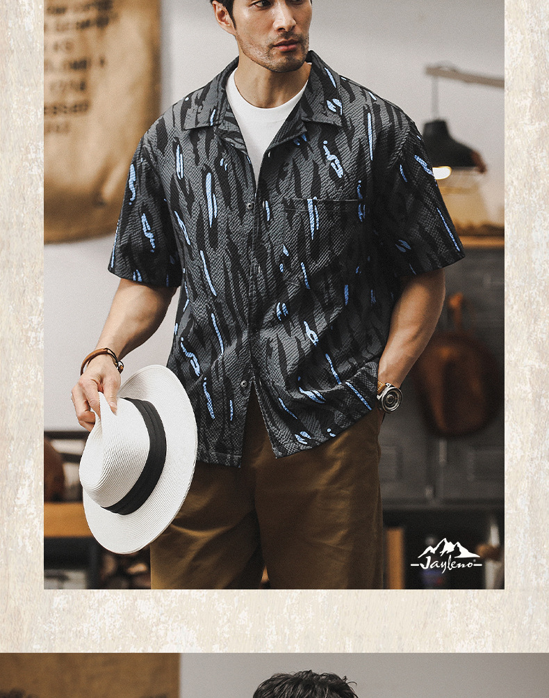 美式經典泡泡紗襯衫男短袖夏季薄款寬鬆古巴領夏威夷痞帥花襯衣男