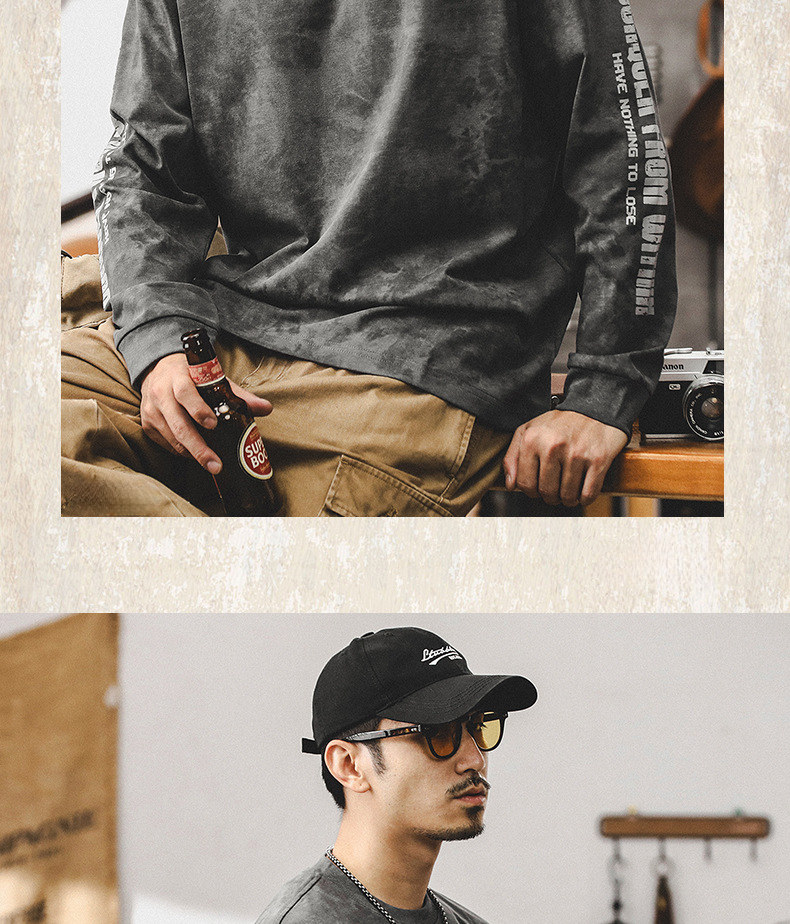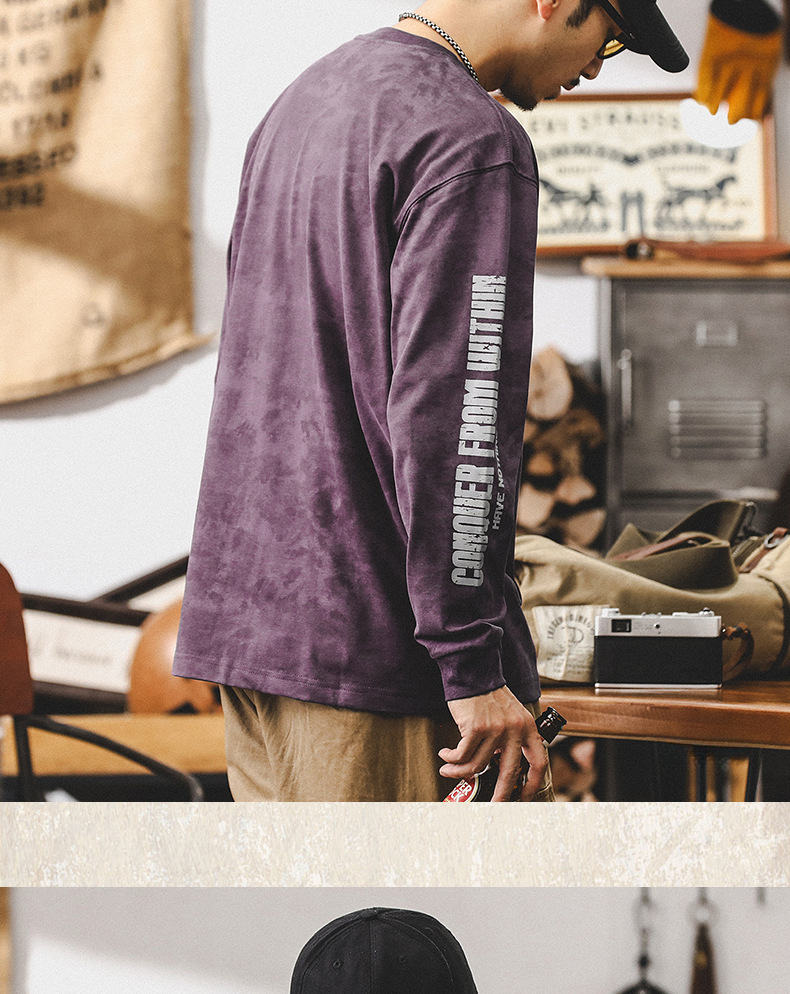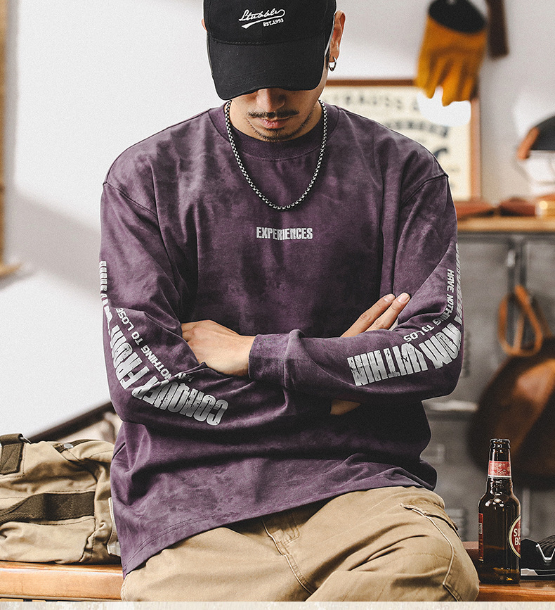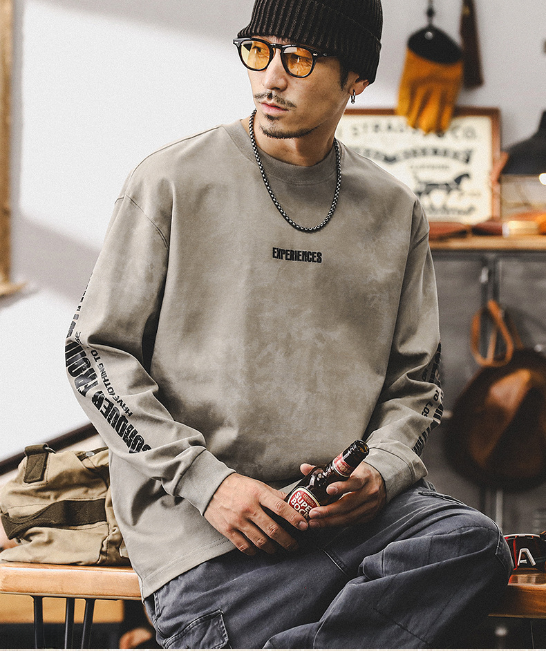 美式複古長袖T恤男春秋季做舊印花上衣T潮牌寬松休閑衣服男款潮流