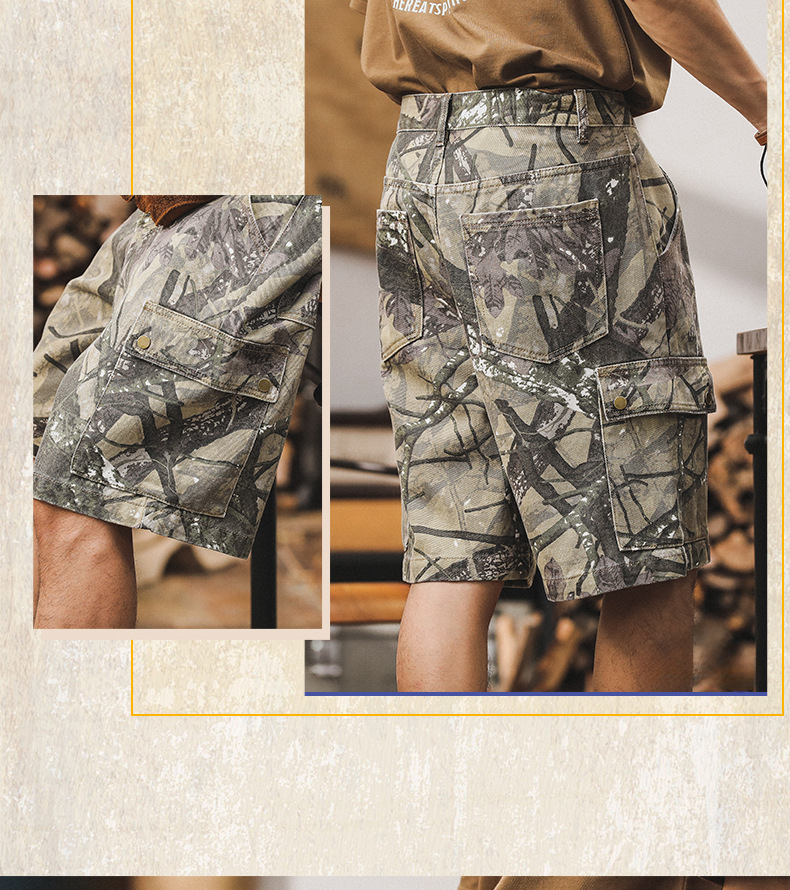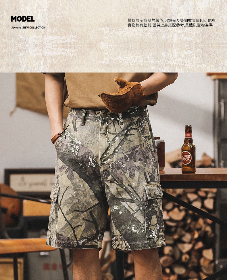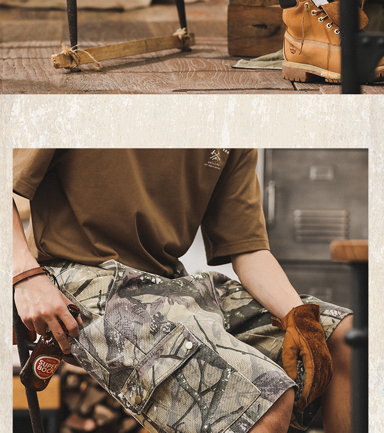美式迷彩工裝短褲男2024新款寬鬆大碼休閒中褲夏季男士潮牌五分褲