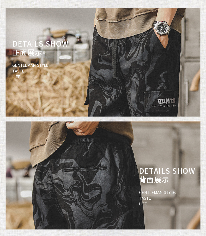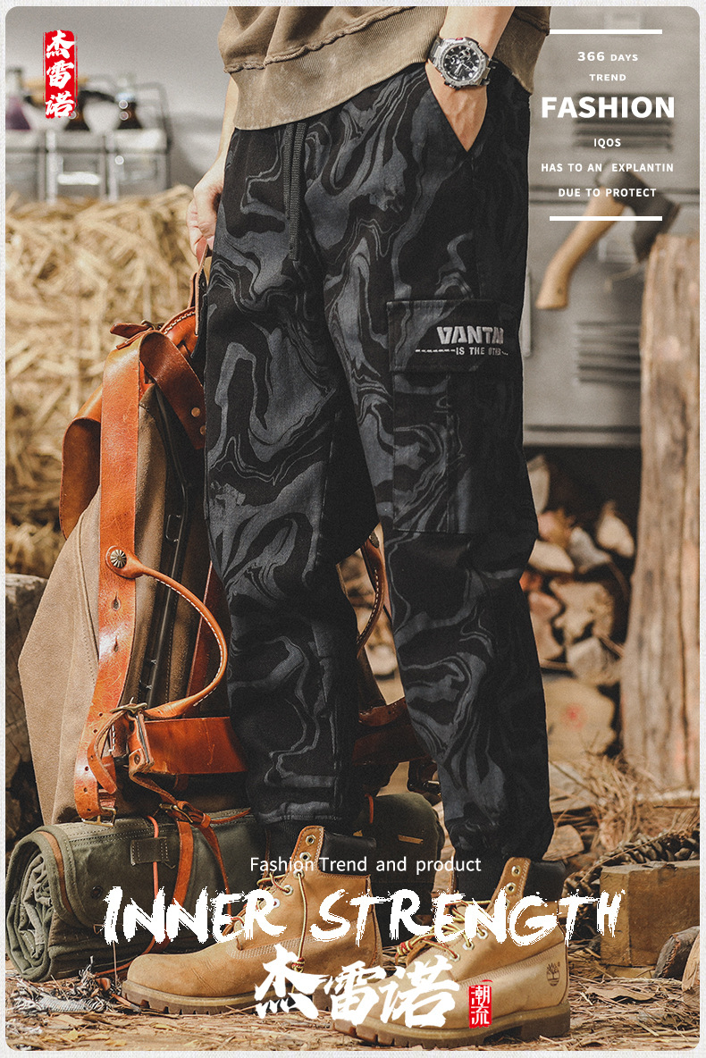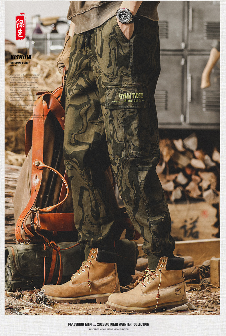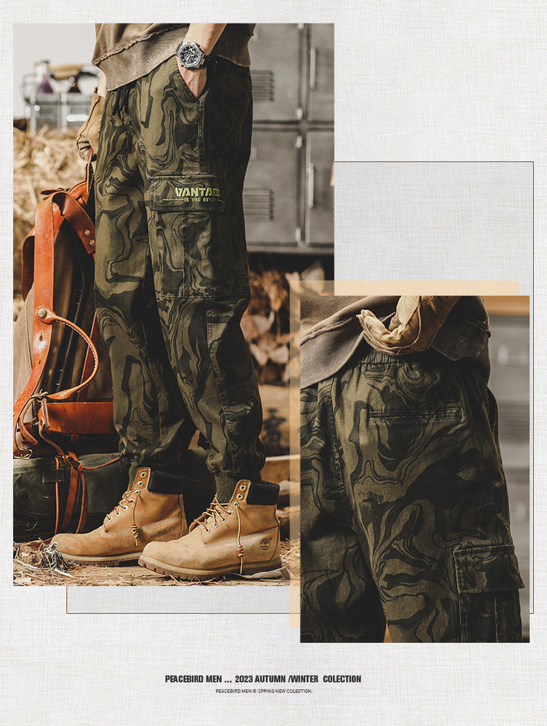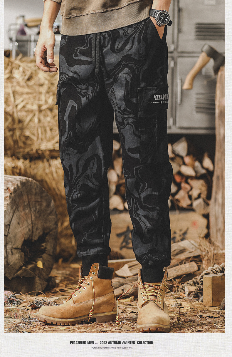 美式迷彩工裝褲子男冬季加厚寬鬆大碼男士休閒褲加絨闊腿束腳褲男