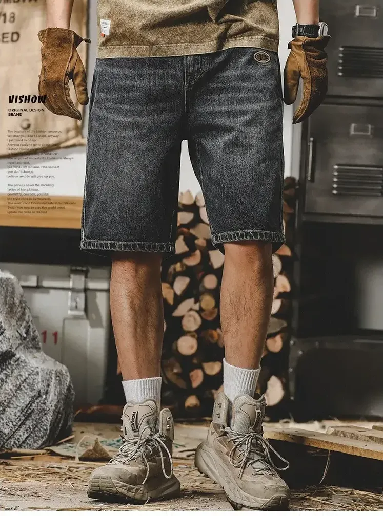 美式重磅复古牛仔短裤男夏季宽松直筒潮牌大码五分裤休闲潮牌男裤