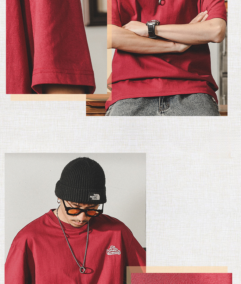 美式重磅280g短袖T恤男t夏季高級感體恤休閒寬鬆大碼紅色上衣