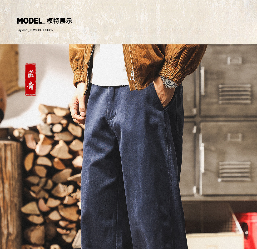 萊賽爾天絲高級感男士休閒褲2025新款潮牌秋季寬鬆直筒藏青色褲子