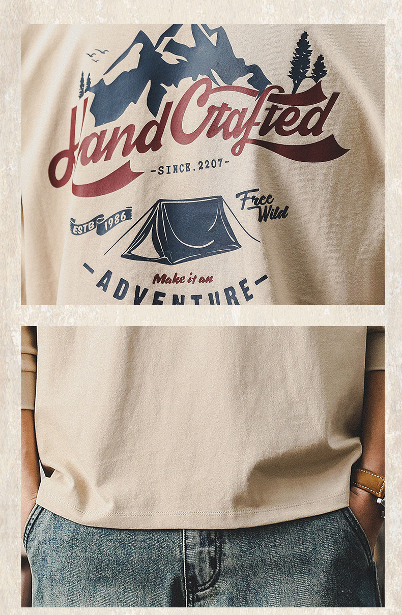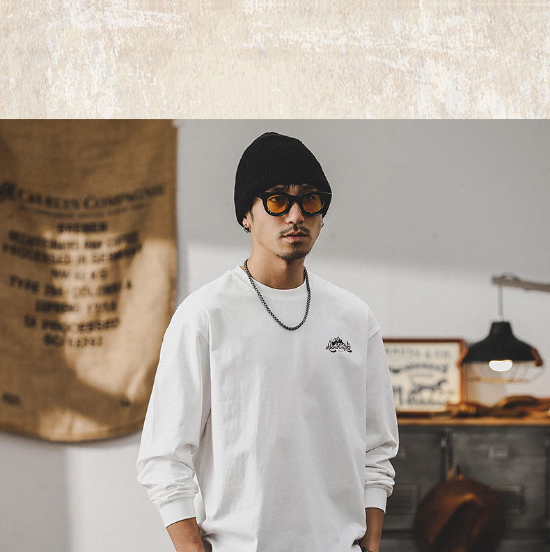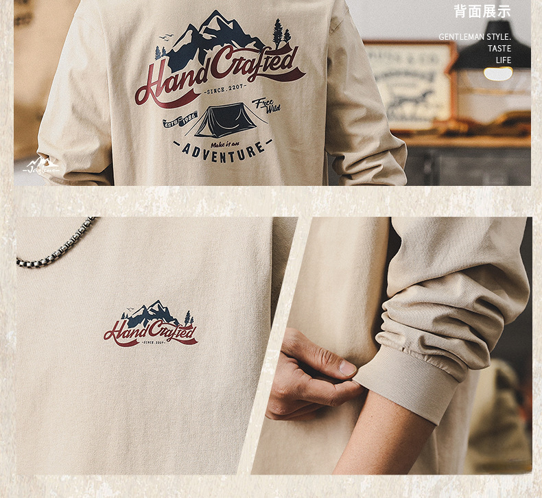 260g重磅双本针男士T恤长袖美式山系印花宽松上衣潮牌衣服男纯棉T
