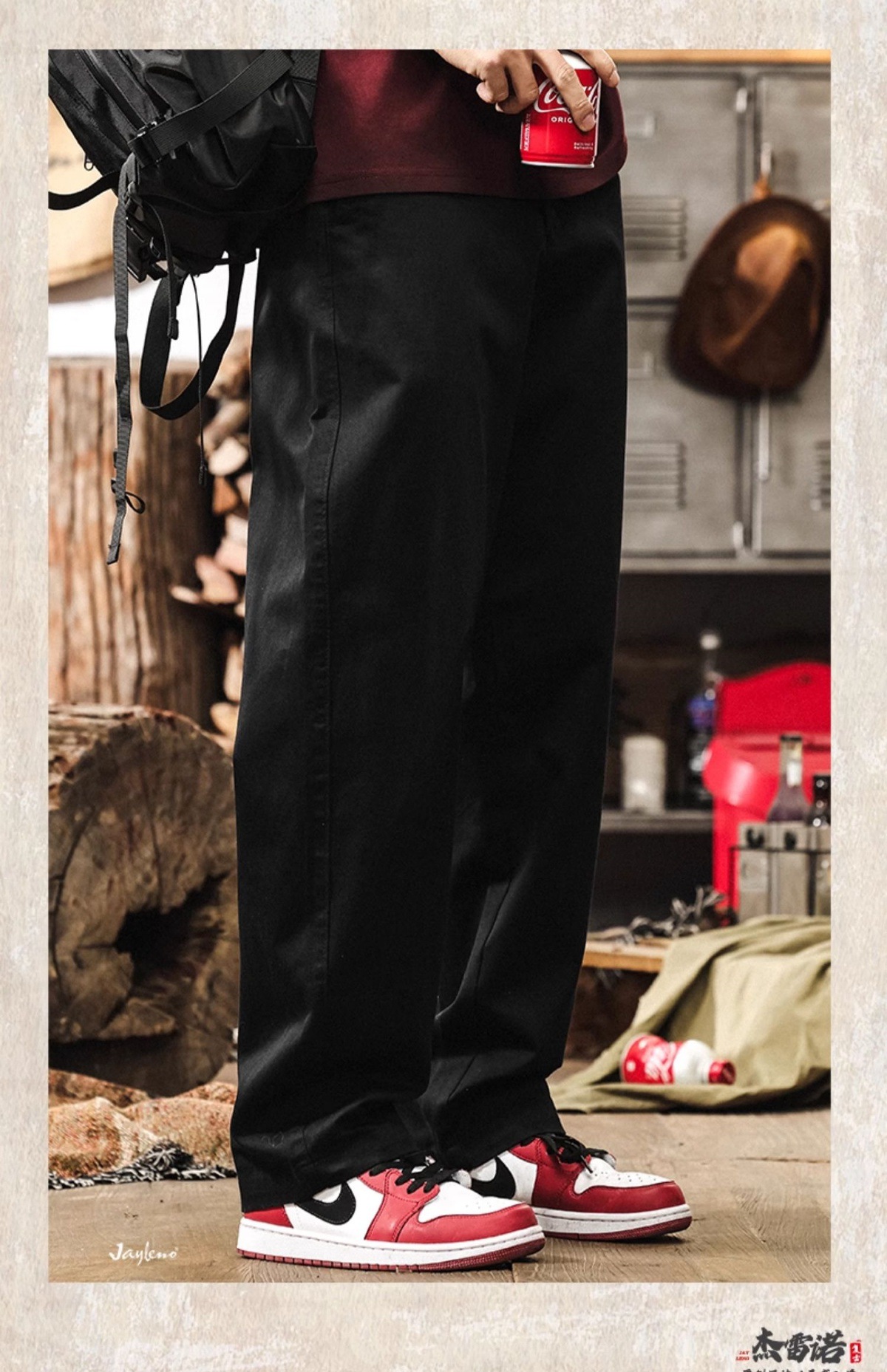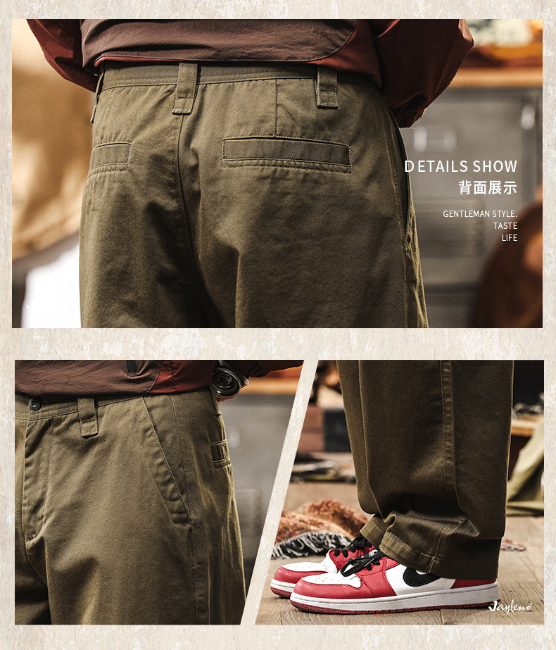 美式復古軍綠色褲子男潮牌直筒水洗闊腿工裝長褲男士寬鬆休閒褲男