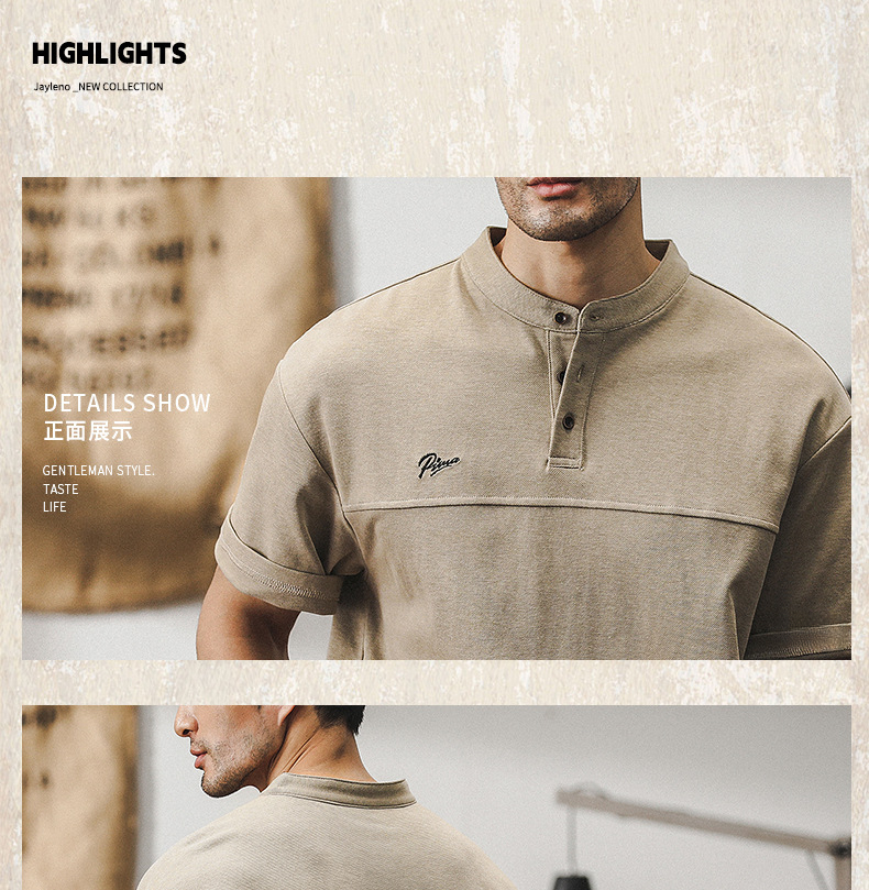 美式重磅Polo衫男短袖夏季2024新款寬鬆潮牌亨利衫簡約休閒T恤男